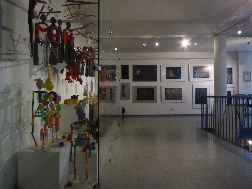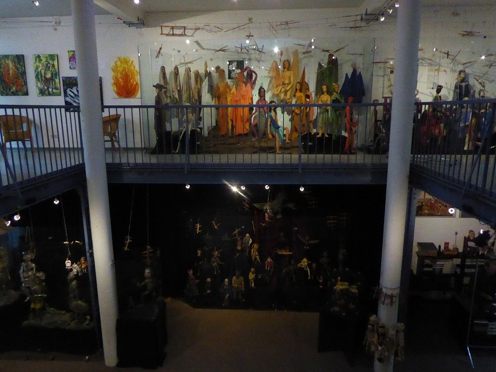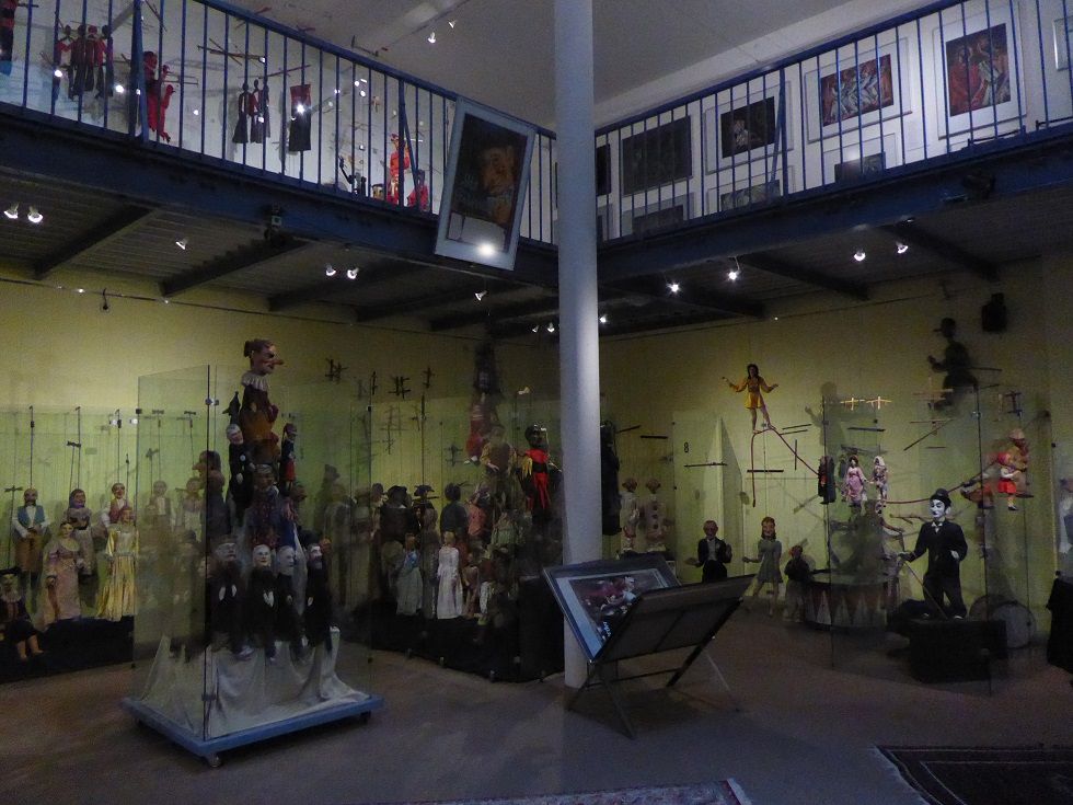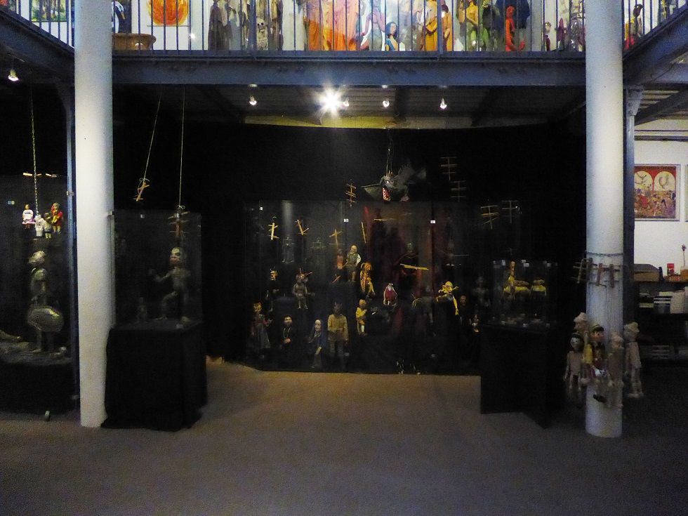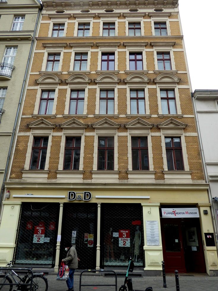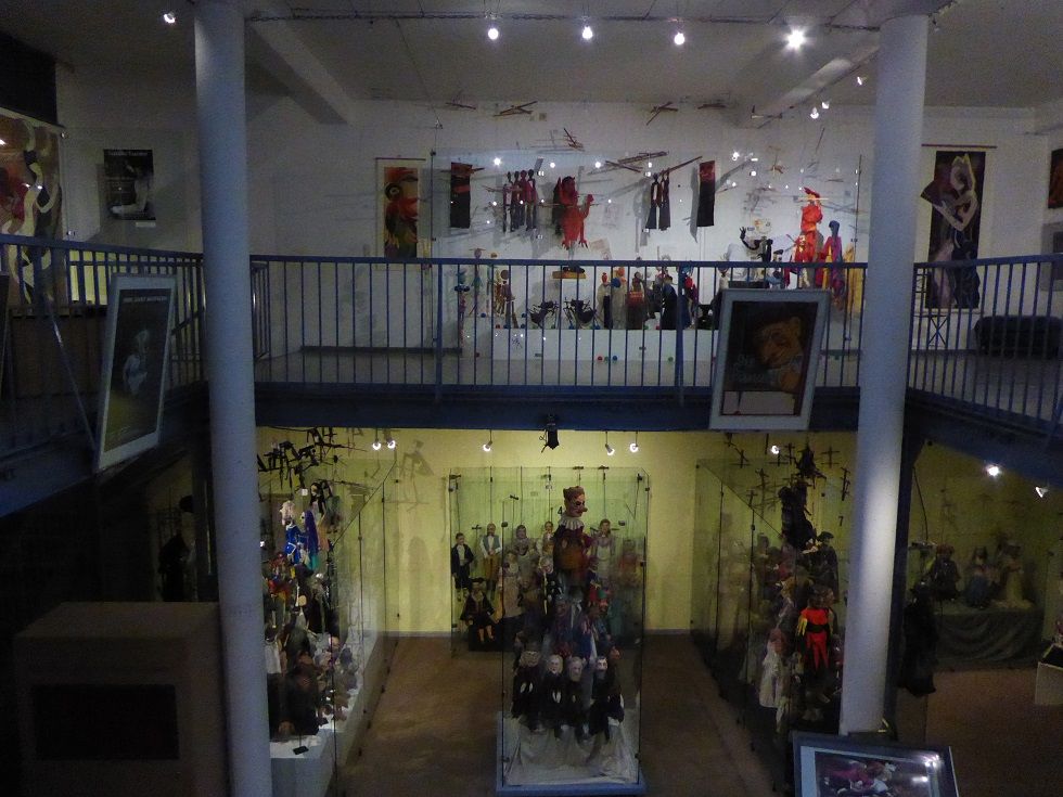 Verbindungsbau zwischen historischen Mietwohnungen im ersten Hinterhof. Zwei Etagen Ausstellungsraum, erste Etage rundum Galerie. Skylight und historische Fenster. Beherbergt historische Marionetten- und Theaterfiguren in Vollglasvitrinen. Kleiner Theaterraum und Büro im dritten Stock. Dachgarten. Nuseumsübliche Beleuchtung. Verdunkelbar. Teeküche, zwei Toiletten und Duschen.