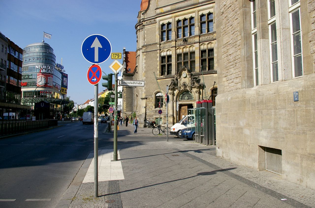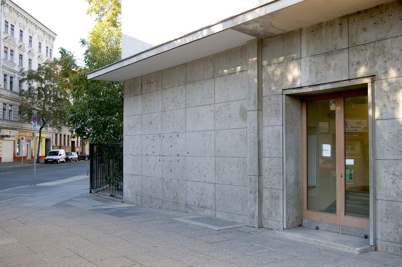Der 1905/ 09 errichtete vier- bis fünfgeschossige Bau mit gestaffeltem Giebel ist mit monumentalisierenden Werksteinplatten verkleidet. Die Funktion der Räume des eigentlichen Rathausteils wird auch nach außen hin sichtbar gemacht: die Bogenfenster im EG deuten die Kassenräume an, während die langgestreckten Fenster des 1. und 2. Geschosses die Sitzungssäle zu erkennen geben.