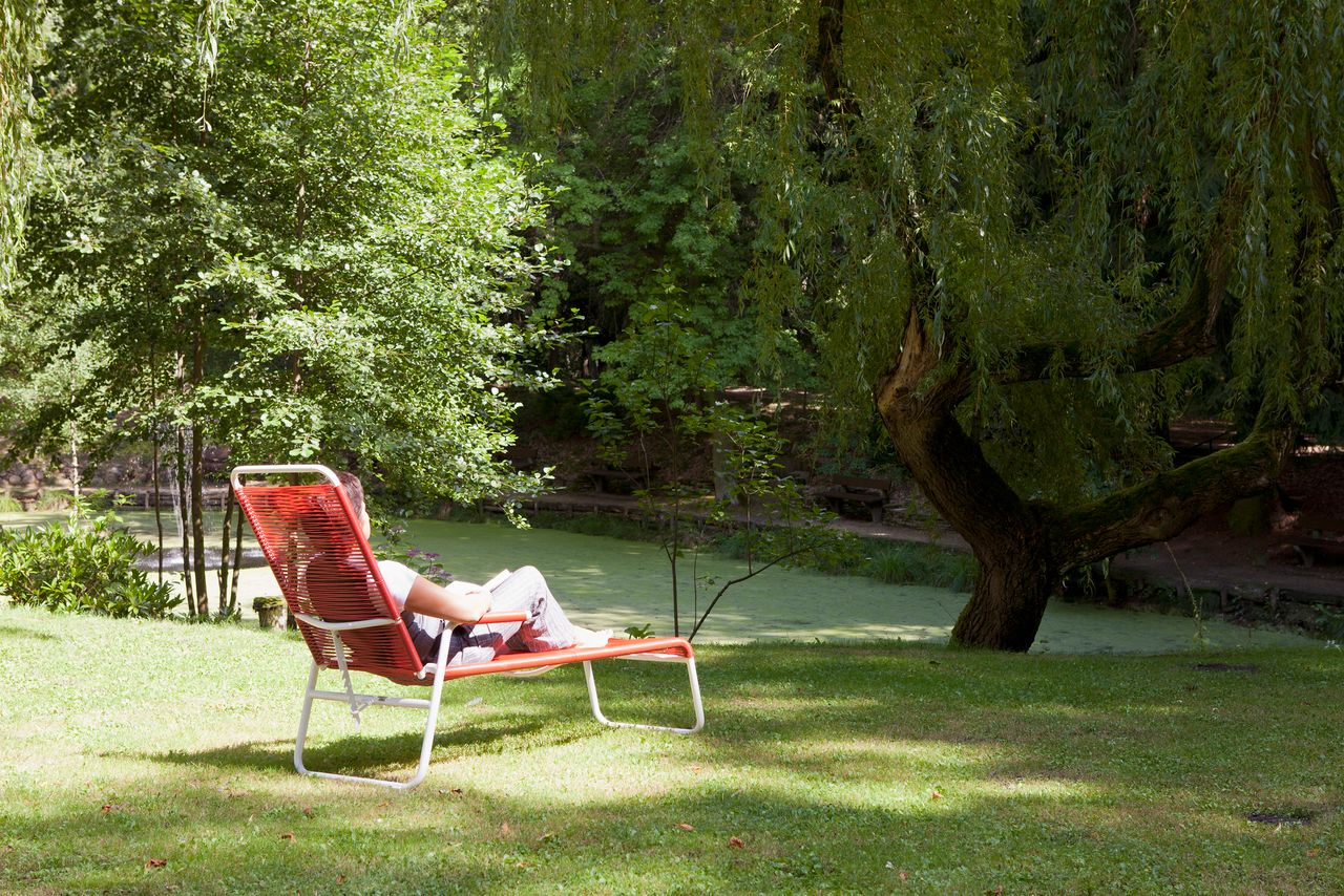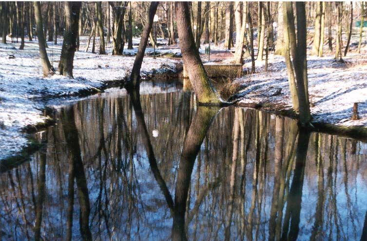 Großer Park mit Teichen und Wald.
