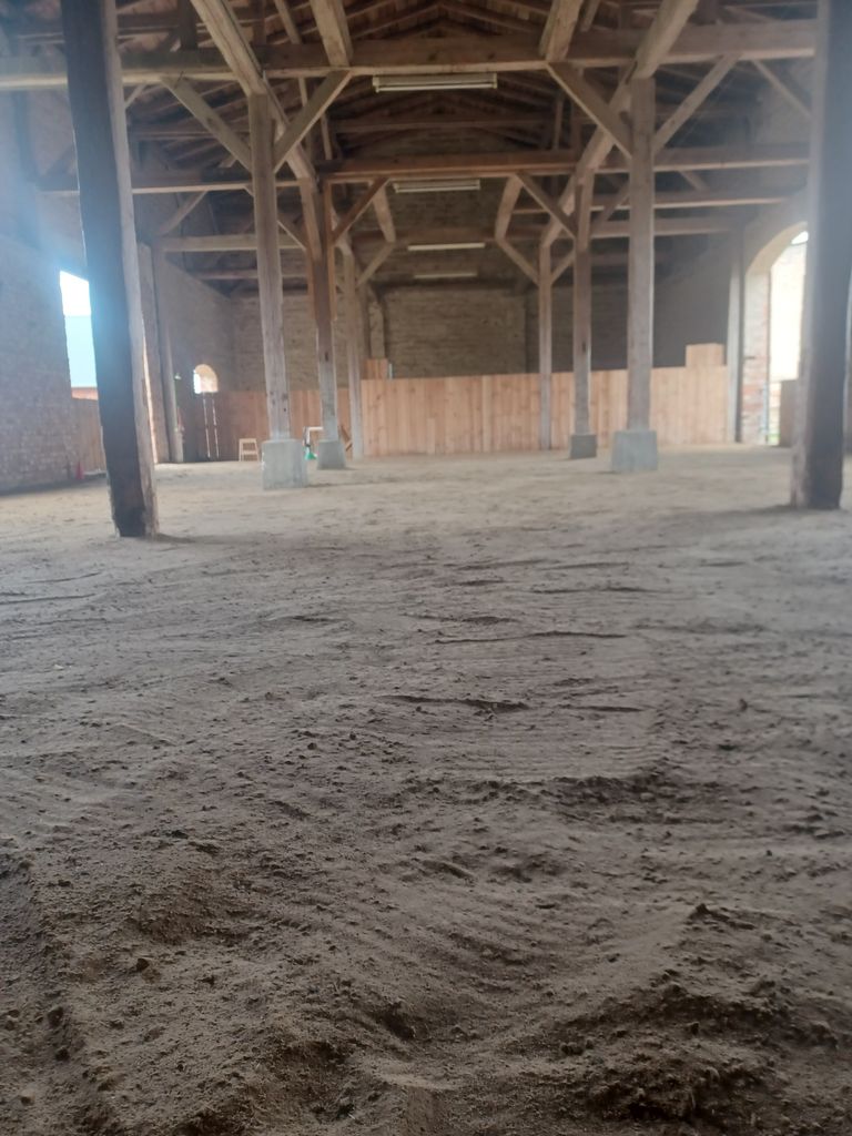 Die Location ist eine alte wunderschöne Halle mit Holzkonstruktion. Wir nutzen sie als Reithalle. Als besonderes Highlight haben wir Fackeln an den Wänden, die sich unkompliziert befüllen und benutzen lassen. Auf Wunsch können wir über einen Einsatz unserer Pferde verhandeln.