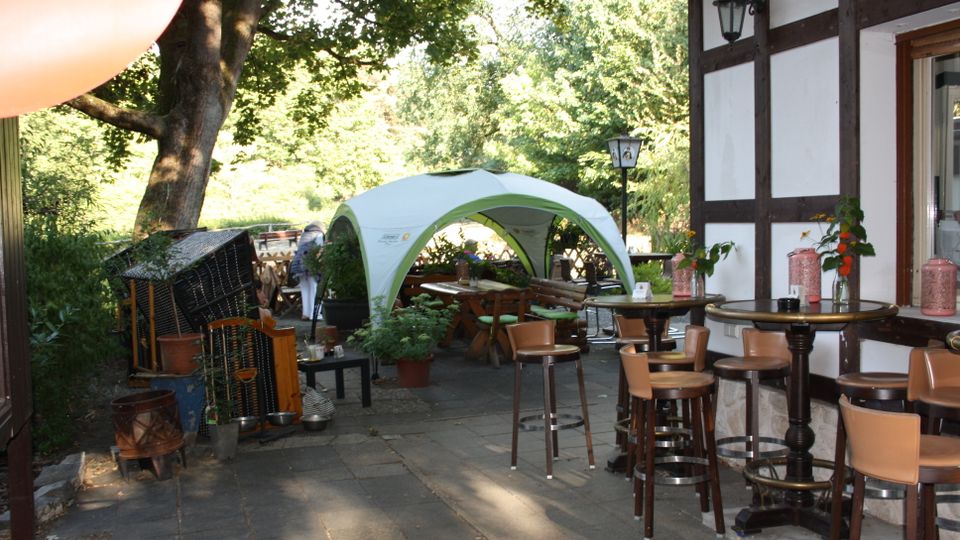Kleines mitten im Grunewald ( Bezirk Zehlendorf) vom Wald umgebenes Restaurant/ Kneipe.Die kleine Hütte, gibt es seit 1930 und macht den Anschein eines Fachwerkhauses. Der Biergarten hat 40 Sitzplätze mit Blick auf die Rodelbahn und den Grunewald.( Wald und Wiese ) Die vordere Terrasse
