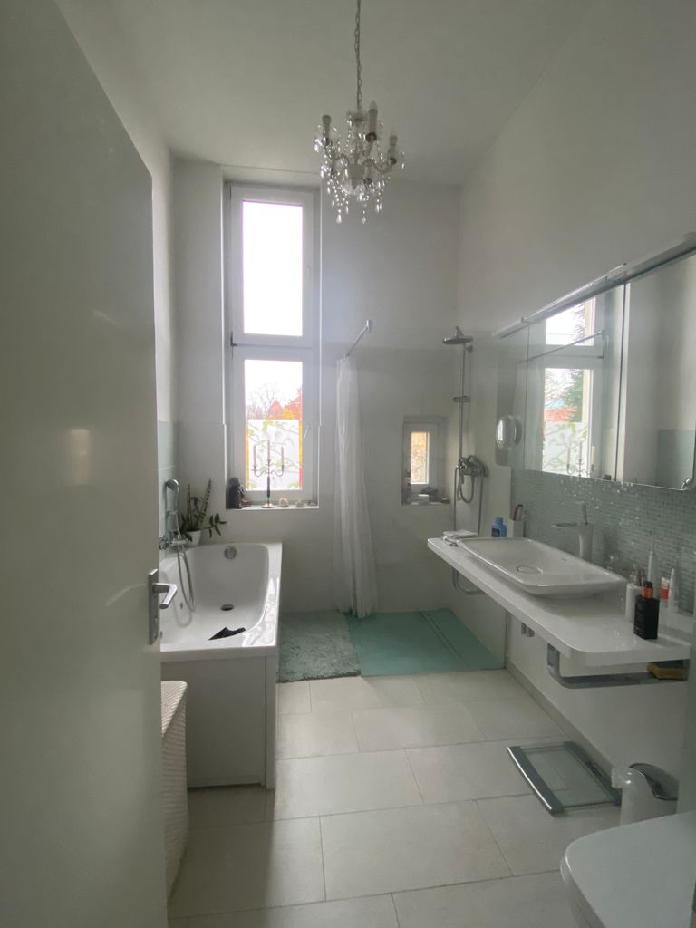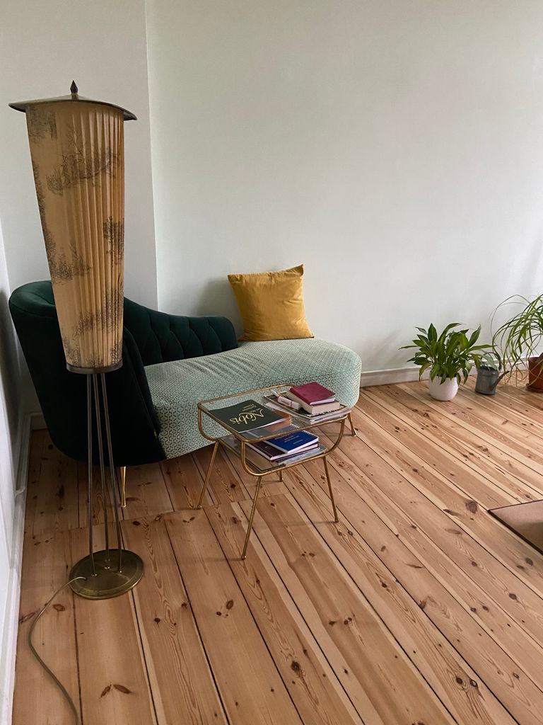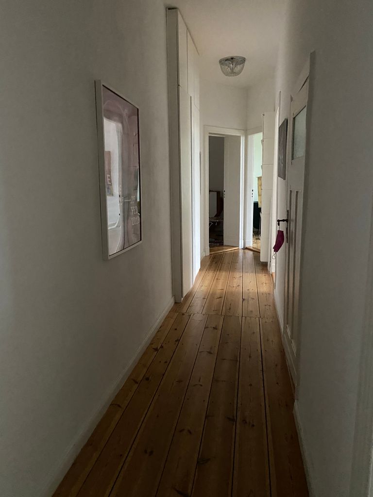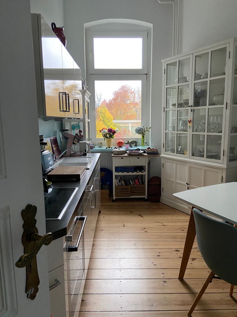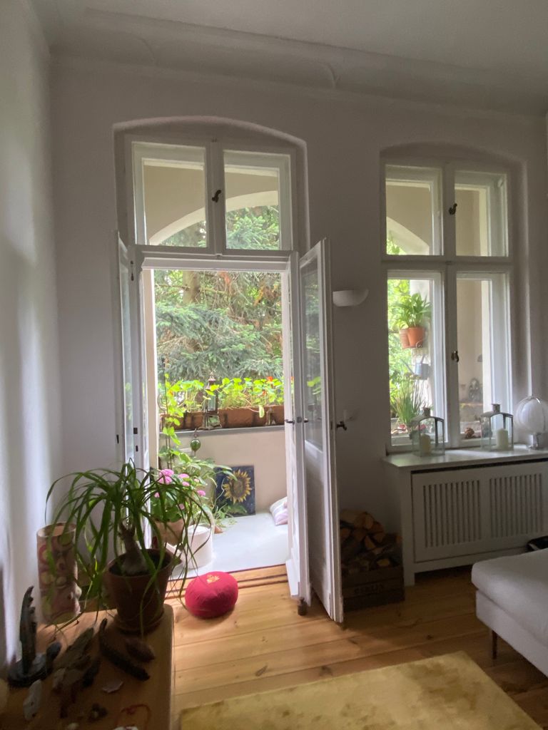 Romantische Dreizimmerwohnung im denkmalgeschützten Mehrfamilienhaus. Das Haus befindet sich in einer ruhigen, mit Linden versehenen Straße. Die Wohnung hat einen kleinen romantischen Balkon, ein Wohnzimmer mit einem weißen Kamin (zwei Sichtfenster), ein Schlafzimmer und einen Yogaraum. In der Küche kann man sitzen, das Bad hat sowohl eine Dusche als auch ein Bad. Alle Räume, bis auf das Wohnzimmer, haben eine Südwestausrichtung. Im Wohnzimmer scheint im Sommer bis 11 Uhr die Sonne (Ostseite).