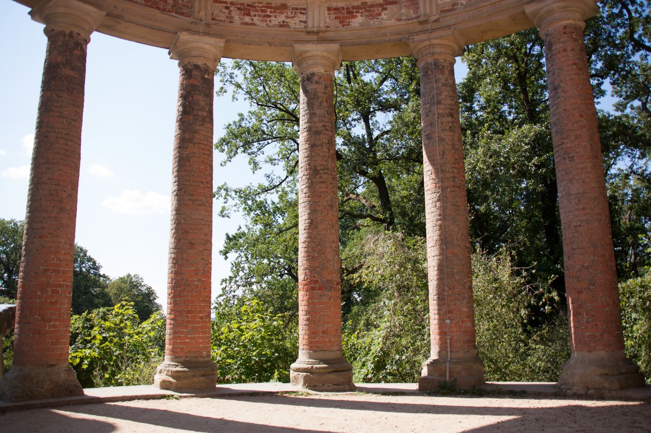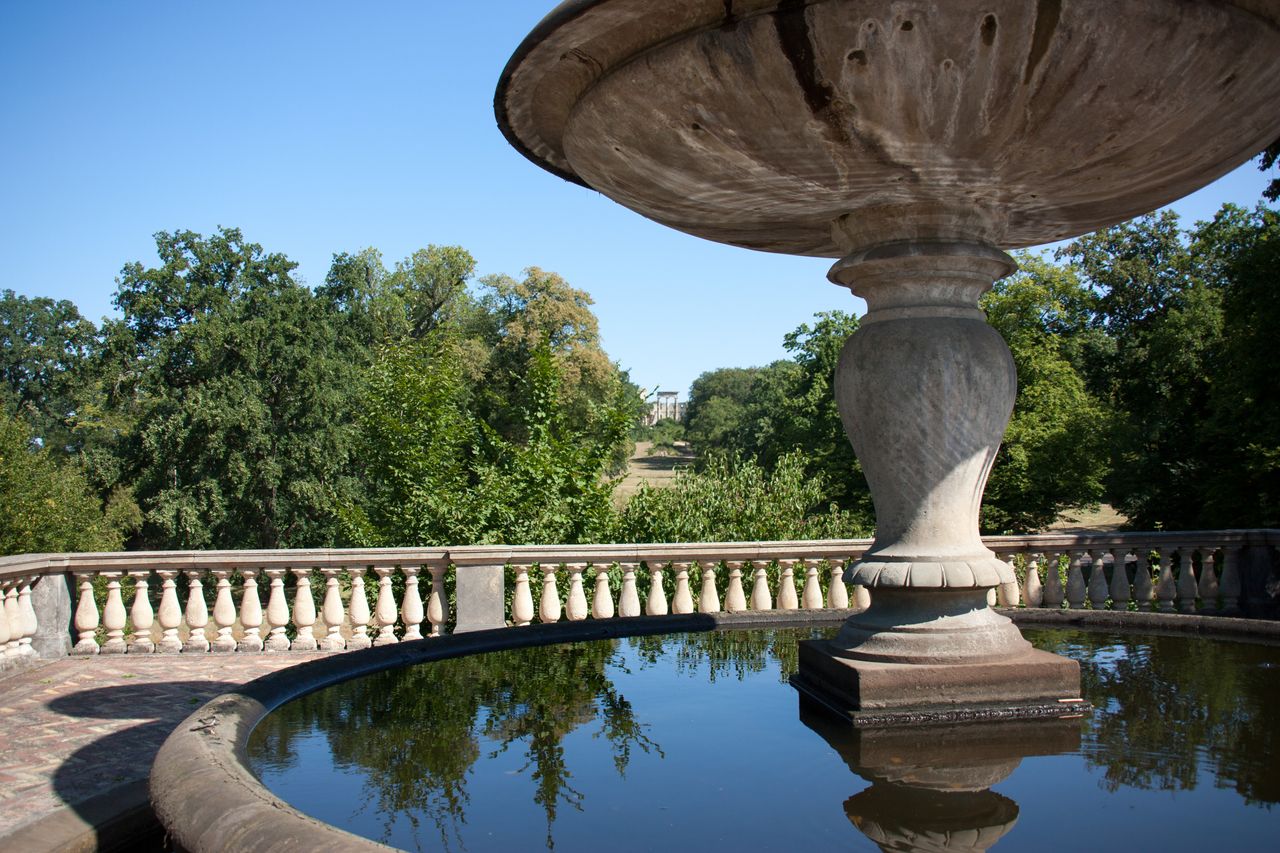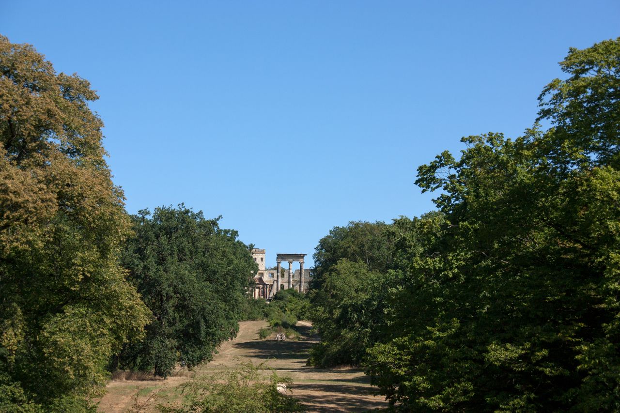 Friedrich der Große hatte Mitte des 18. Jahrhunderts auf dem Ruinenberg ein Wasserbecken zur Speisung der Fontänen im Park Sanssouci anlegen lassen. Er umgab das Becken mit einem kunstvollen Arrangement aus kolossalen Säulen, einem dorischen Rundtempel und einer Pyramide, die sich im Wasser spiegelten, einer antiken Theatern nachempfundenen Ruinenwand und einer natürlichen Baumkulisse. Es war eine der frühesten von England beeinflussten Landschaftsstaffagen auf dem Kontinent.