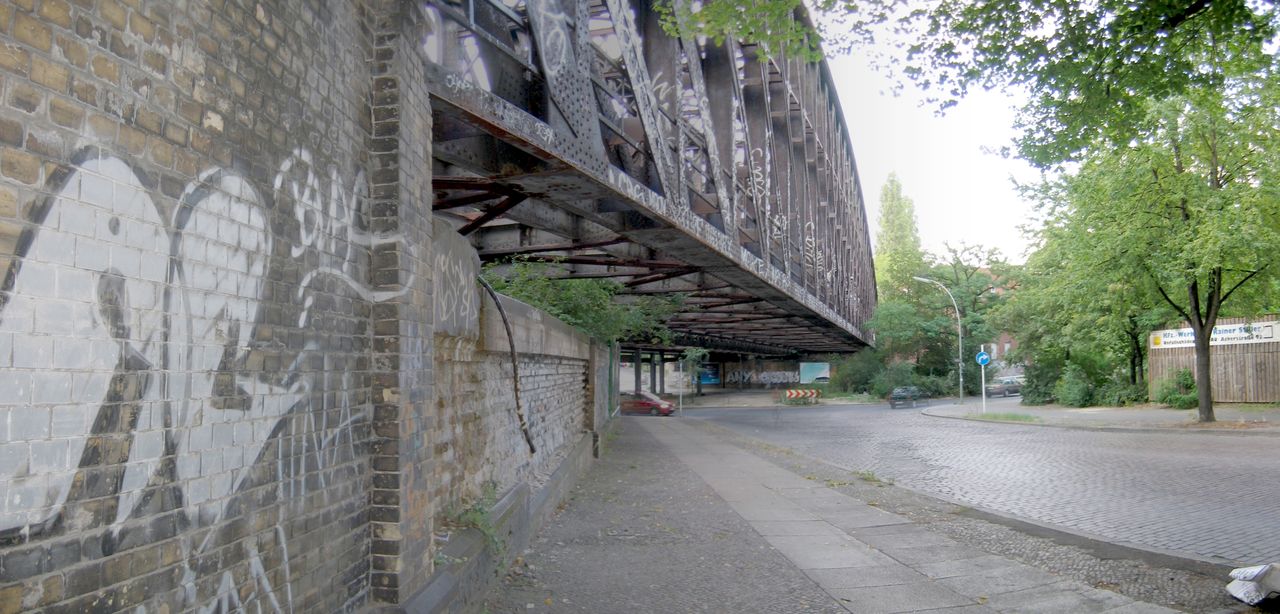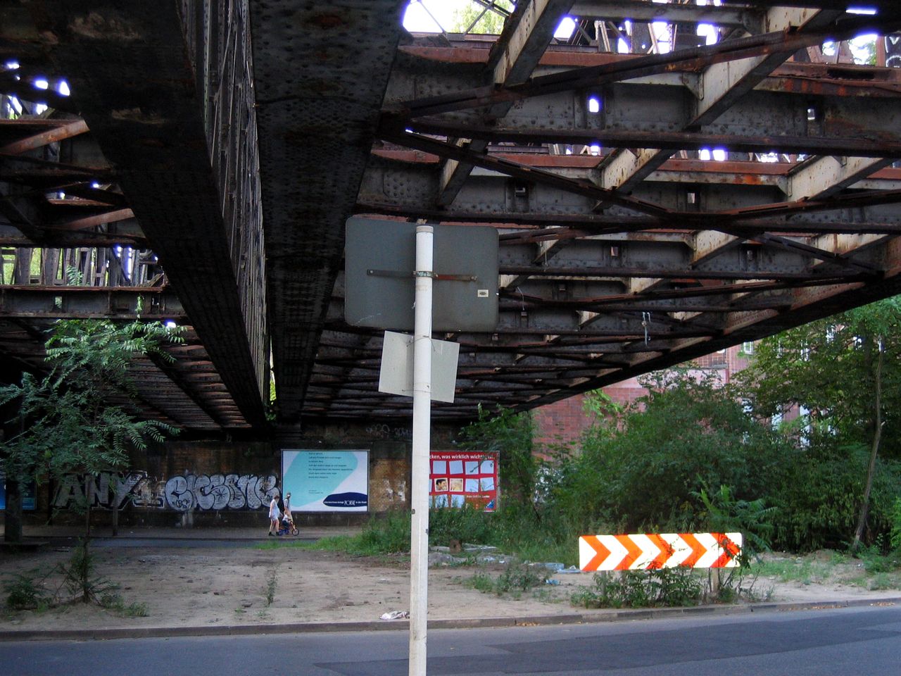 S-Bahn Brücke mit historischem Hintergrund: Direkt neben der S-Bahn Brücke in der Liesenstrasse befindet sich noch ein Überrest der Berliner Mauer. Früher befand sich direkt hinter diesem Mauerstück einer der zahlreichen Wachtürme, von dem aus die DDR-Regierung ihre Grenze beobachten ließ.