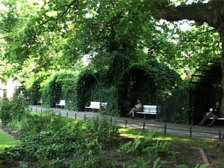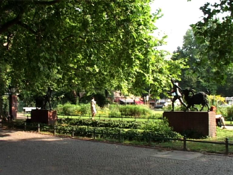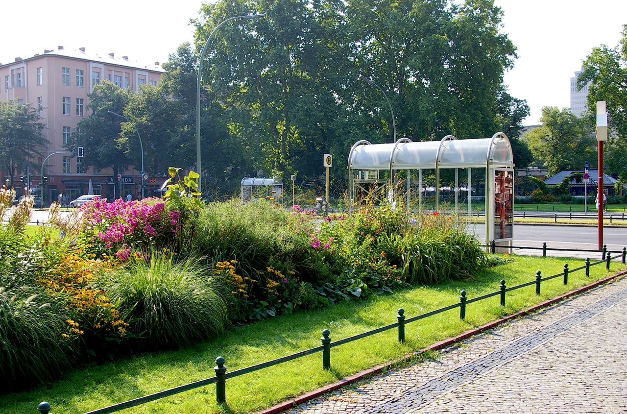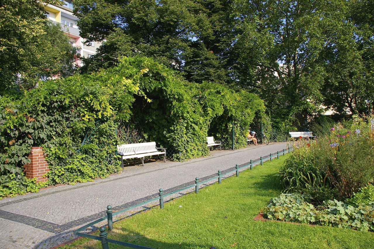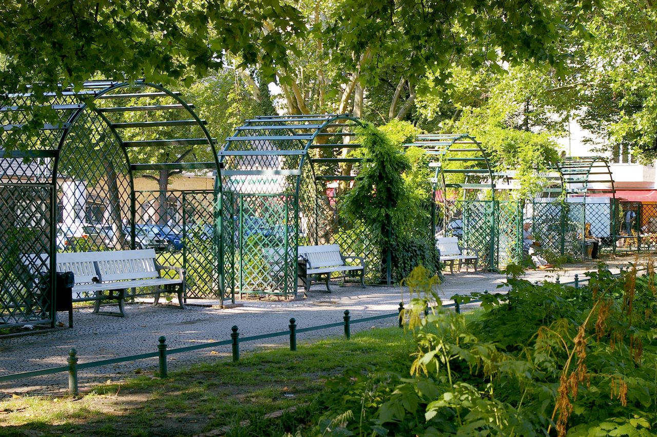 Der Savignyplatz, der nach dem preußischen Minister und Juristen Friedrich Carl von Savigny (1779-1861) benannt wurde, entstand Ende des 19. Jahrhunderts inmitten eines gründerzeitlichen Wohnquartiers. Entsprechend den zeitgemäßen Vorstellungen wurde er als Rasenschmuckplatz mit geometrischem Grundriss und einer Fülle von Beeten mit Ziersträuchern angelegt. Durch die Kantstraße ist er traditionell in zwei Hälften geteilt. Der Charlottenburger Stadtgartendirektor Erwin Barth gestaltete den Platz 1926 in einen Garten- und Erholungsplatz um. Der Platz erhielt eine raumbildende und strukturierende Bepflanzung mit jahreszeitlich wechselnd blühenden Staudenrabatten und umrahmenden Sträuchern und Bäumen wie Platanen und Linden. Von den laubenartigen, mit Rankpflanzen besetzten Sitznischen aus kann man die Blütenpracht genießen. Der Savignyplatz ist heute umgeben von zahlreichen Geschäften, Restaurants und Cafés.