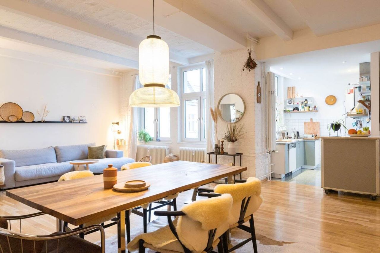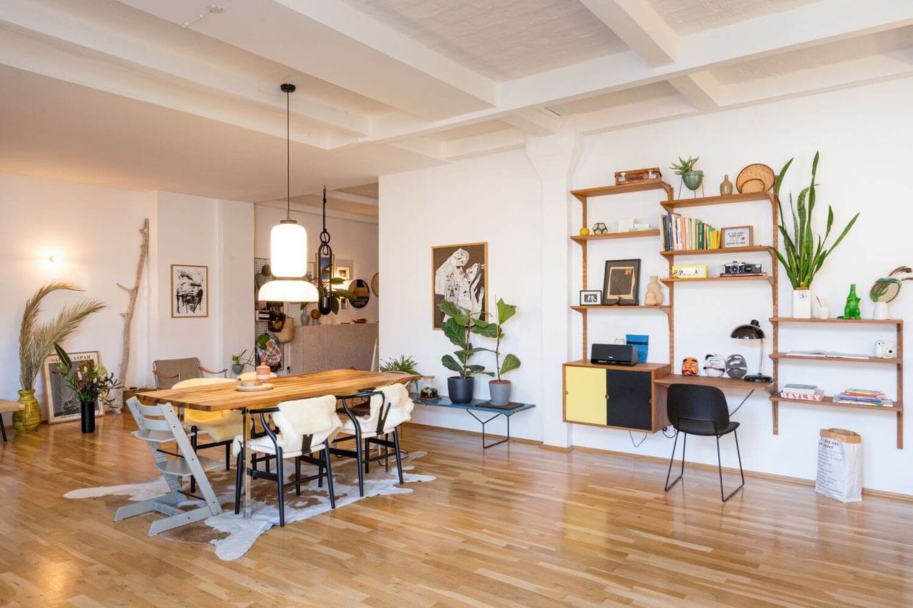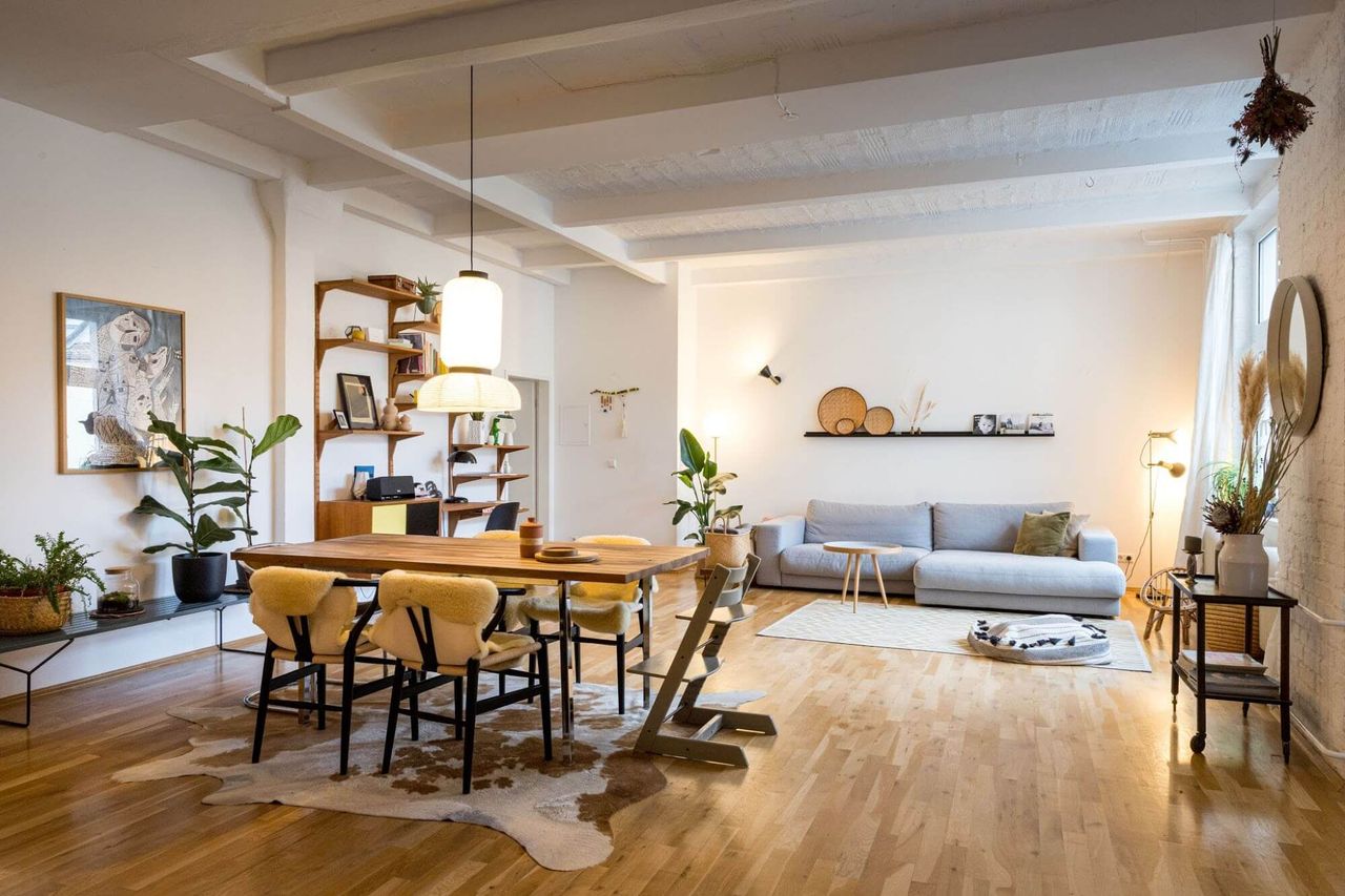 Scandinavian minimalism meets industrial flair in this former factory loft! With an inspiration to create a social convenience space, the owners chose an open plan concept themed with comforting Scandi aesthetics, sustainable high quality furniture and midcentury designs. Three words: Spacious, stylish and versatile. A beautiful family Home Studio offering the perfect backdrop for cosy creative productions.