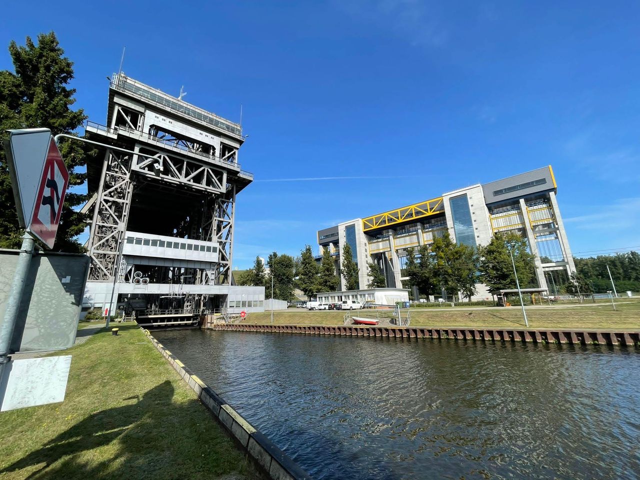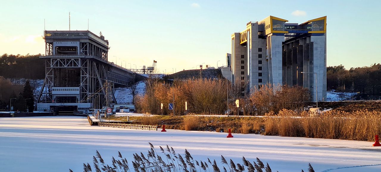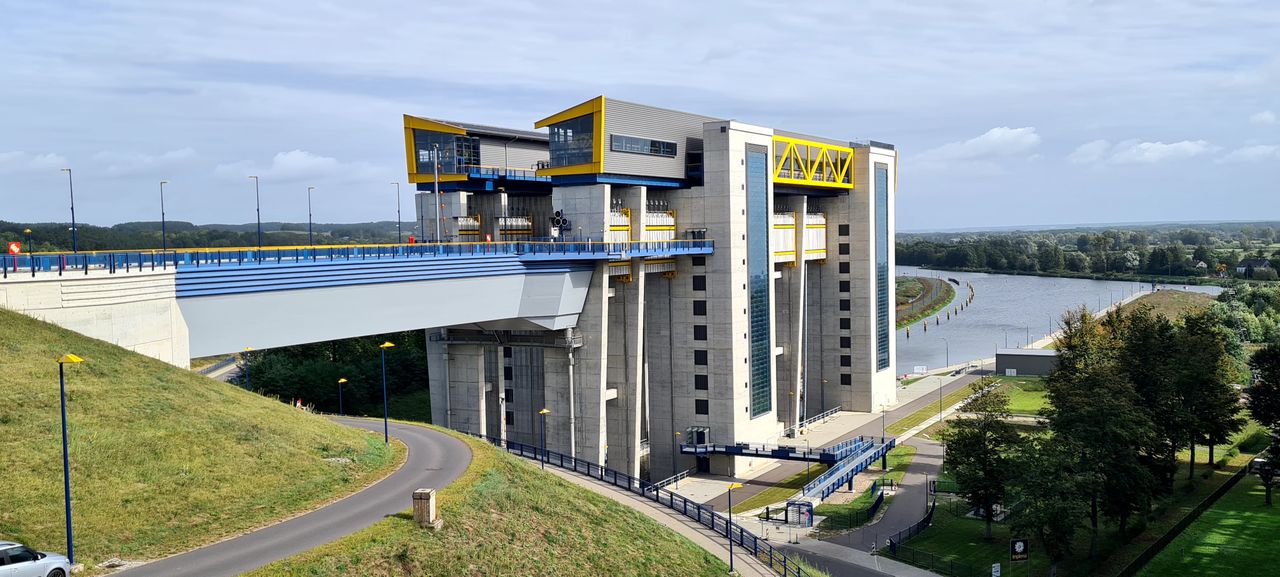 Neben dem ältesten noch in Betrieb befindlichen Schiffshebewerk der Welt befindet sich der Neubau des neuesten Hebewerks. Mit Hilfe der rund 60 Meter hohen Maschinen überwinden seit 1934 jährlich tausende von Schiffen rund 36 Meter Höhenunterschied. Das alte Schiffshebewerk ist eine Stahl-Nietenkonstruktion, das neue Hebewerk eine moderne Stahlbeton-Konstruktion, die nach erfolgreichem Probebetrieb ab 2022 in Betrieb gehen soll. Das alte Hebewerk wird danach noch mindestens 5 Jahre weiter betrieben werden. Das gesamte Ensemble, auf dem sich über 400 Jahre Baugeschichte und vier Generationen von Wasserbauwerken befinden, gilt als eines der wichtigsten Denkmäler der Ingenierbaukunst in Europa. de.wikipedia.org