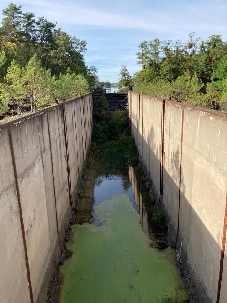 Die vierstufige Schleusentreppe Niederfinow im Norden des Landkreises Barnim in Brandenburg war das älteste Schleusenbauwerk am östlichen Ende der Scheitelhaltung im Oder-Havel-Kanal. Die riesigen Schleusen waren von 1912 bis 1972 in Betrieb. Sie verfallen seit einigen Jahren uns sind für die Öffentlichkeit zur Zeit nicht (mehr) zugänglich. Eine Schleusentreppe ist noch im historischen Zustand, eine weitere ist aufgelassen, zwei weitere sind zugeschüttet. de.wikipedia.org