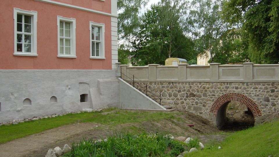 Imposante zweigeschossige Zweiflügelanlage, 1787 durch umfassenden Umbau mehrerer Vorgängerbauten auf mittelalterlichen Fundamenten entstanden. Sorgfältig restauriert im Stil der Erbauungszeit, Lage an der naturbelassenen Stepenitz, Park erst zu geringen Teilen rekonstruiert.