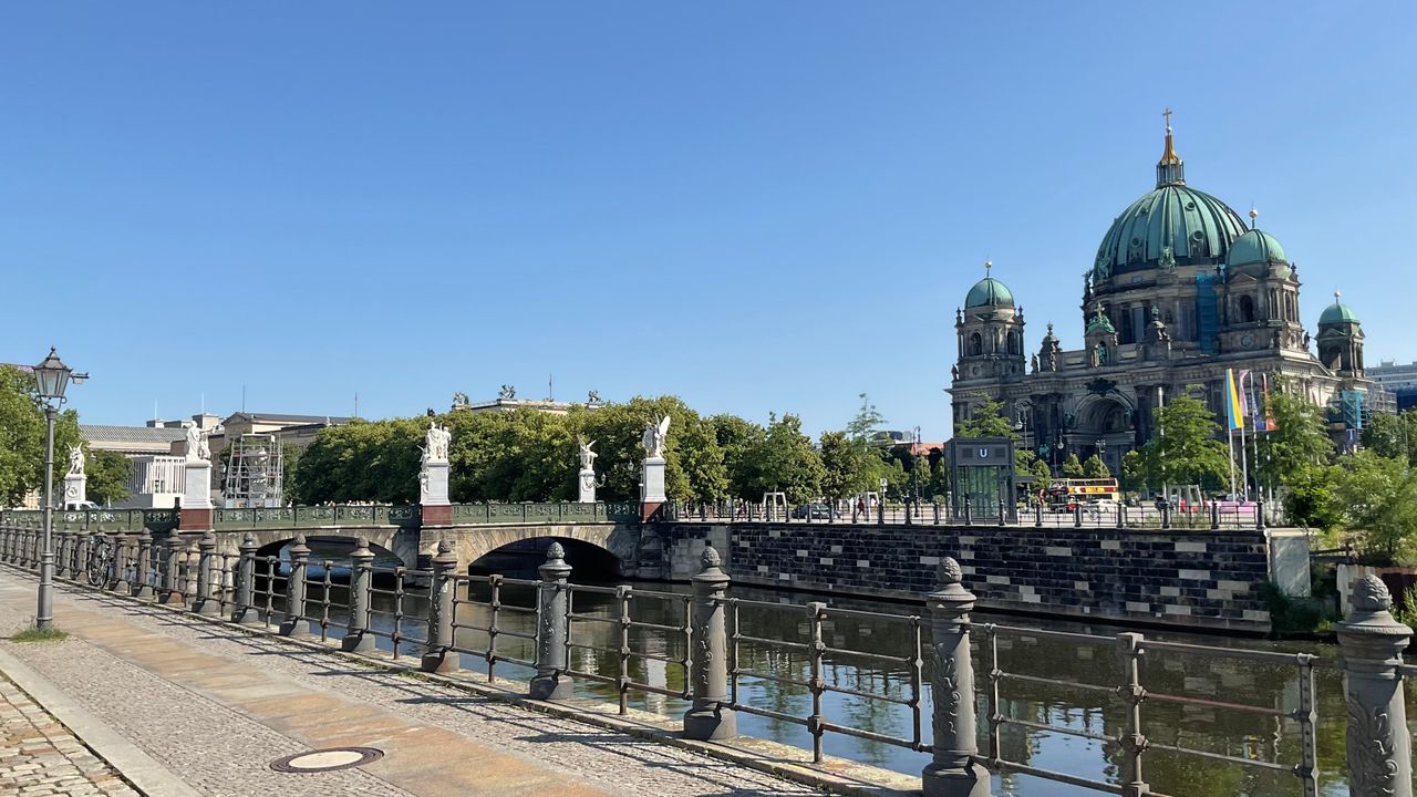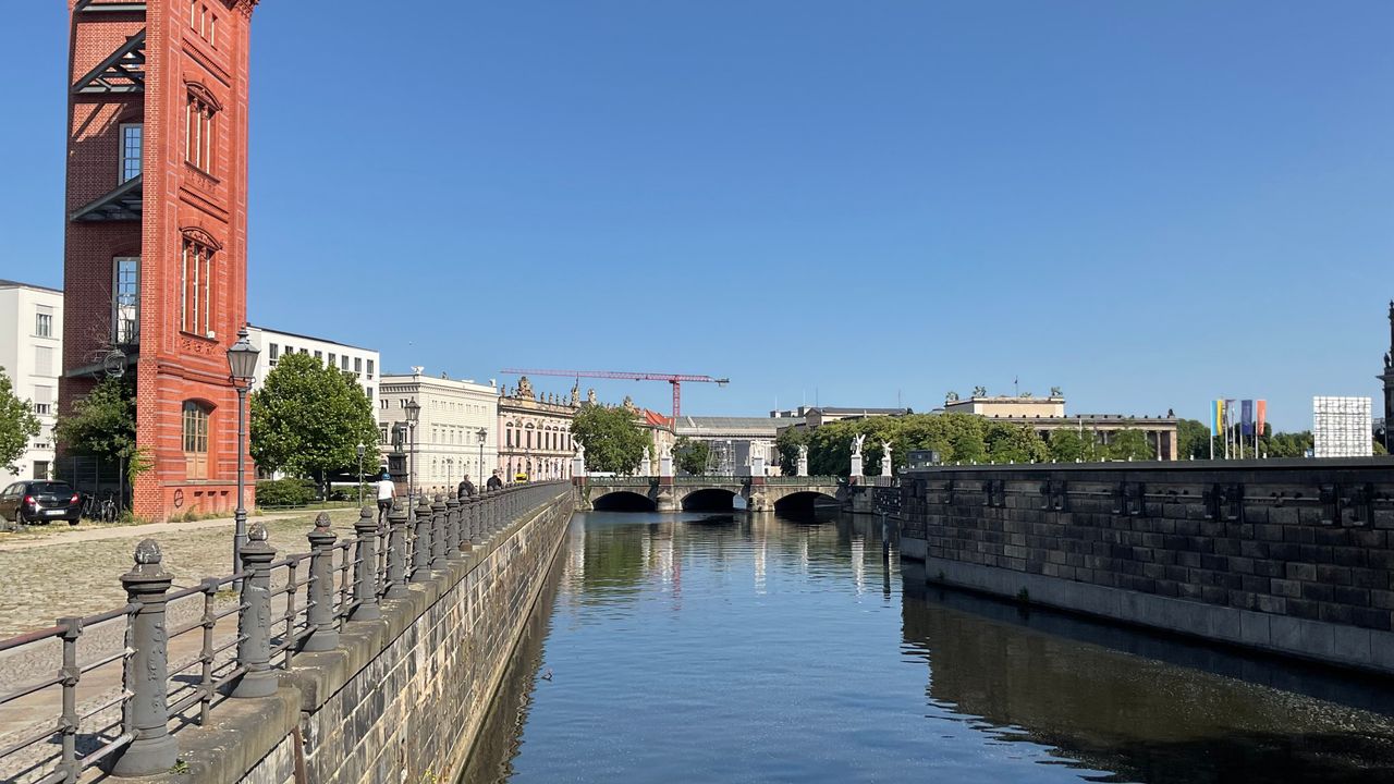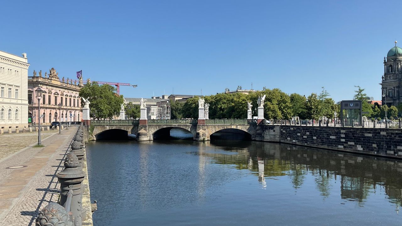 Historische Brücke überquert den Spreekanal. Verbindungsstraße zwischen der Staatsoper “Unter den Linden”/ Deutsches Historisches Museum (Zeughaus) und dem Dom/Fernsehturm(Alexanderplatz).