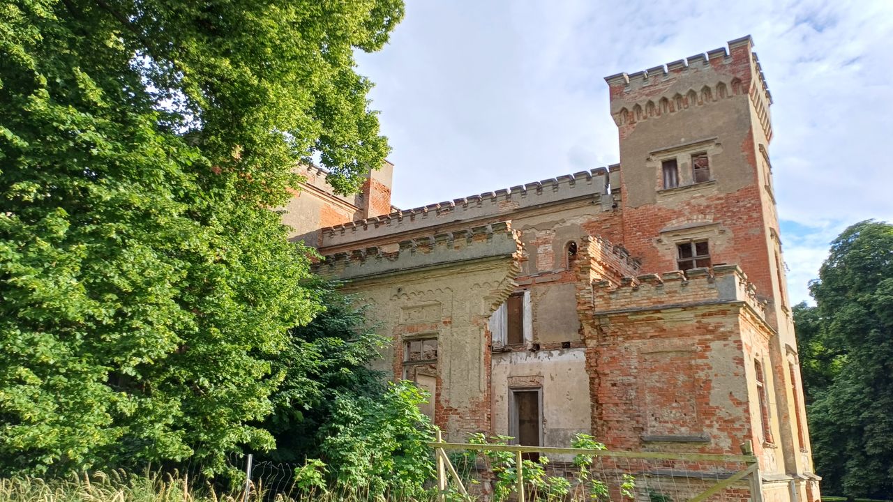 Rittmeister Wilhelm-Georg von Warburg ließ 1860/61 das Herrenhaus vom Wriezener Baumeister Ferdinand Neubart als prachtvolles Schloss im Tudorstil. Das neogotische Bauwerk, ist heute eine verfallene, verwunschene Ruine.