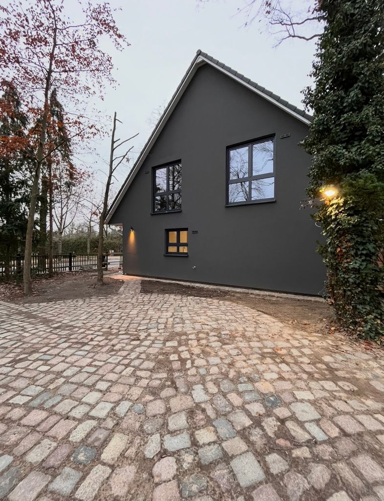 Das sehr schöne schwarze Doppelhaus liegt in mmitten von Hohen Bäumen und doch in Berlin. Die Zuwegung und der Parkplatz sind mit historischen Pflastersteinen gepflastert. Auf dem Parkplatz können zwei Autos parken direkt auf dem Grundstück. Das Haus ist mit Fisch Grete Parkett und einem sehr geschmackvollen Stil eingerichtet. Die beiden Badezimmer bestechen durch die einzigartigen Fliesen und die Möblierung. Die Treppe ist speziell angefertigt und hat eine wunderschöne Farbe. Die Römer sind großzügig und auch schnell verfügbar so dass Film und Foto arbeiten nichts im Wege steht. Im Wohnzimmerbereich sind bodentiefe Fenster, ebenso in den oberen Zimmern. Alle Räume sind voll eingerichtet in einem individuellen Stil, der sich durch das ganze Haus zieht. Die Deckenhöhe und die relativ freie Verfügbarkeit ermöglichen Ihnen ein reibungslos Arbeiten.