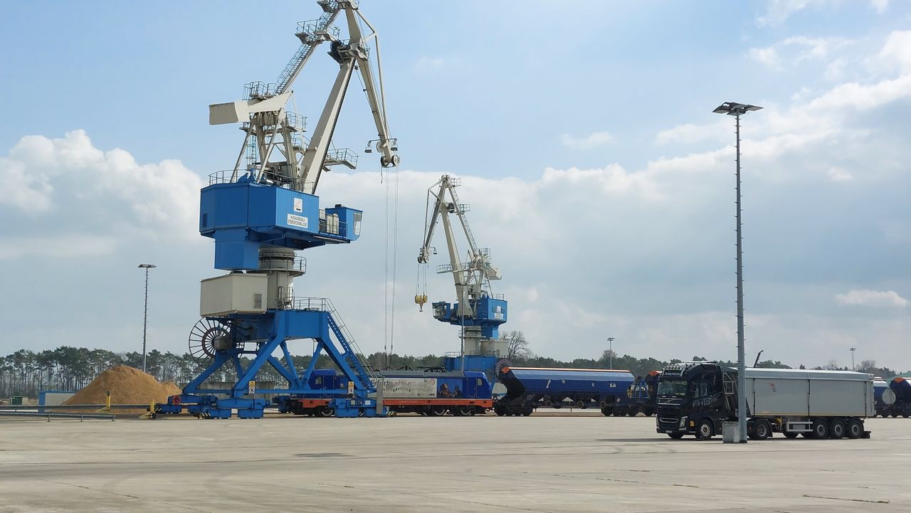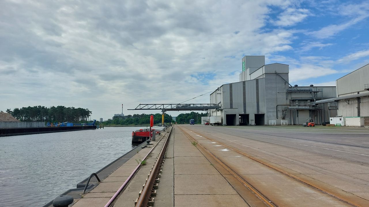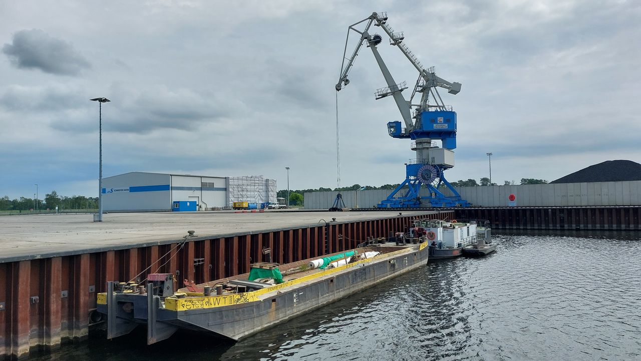 Der Hafen Schwedt, der über die Hohensaaten-Friedrichsthaler Wasserstraße mit der Oder verbunden ist, ist ein Binnenhafen mit einer großzügigen Kaimauer rund um das Hafenbecken. Mit seiner großzügigen 100 m breiten Fläche, auf der zwei hochmoderne, schienengebundene Portaldrehkrane mit Doppel-Lenker-Wippsystem stehen, bietet der Hafen auf insgesamt ca. 7 Hektar Raum für effiziente Umschlagsarbeiten. (vgl.: www.hafen-schwedt.de)