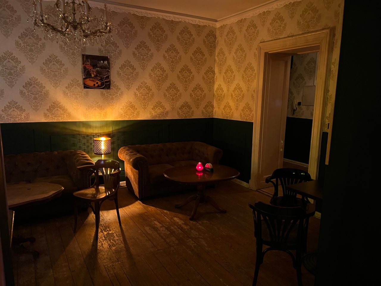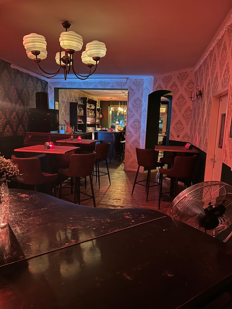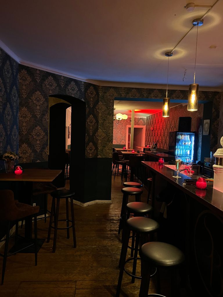 Wir bieten eine volleingerichtete Bar mit langem Tresen (4,70 m), 11 Tischen und Platz für ca. 100 Gäste (stehend) in einem denkmalgeschützten Haus in Schöneberg für Film/Fernseh- und Fotoproduktionen an. Durch Rollos können die miteinander verbundenen Räume abgedunkelt werden. Der Fußboden ist aus Holz. Im von der Bar zugänglichen Keller besteht weiterhin die Möglichkeit, Garderoben oder Ähnliches einzurichten.