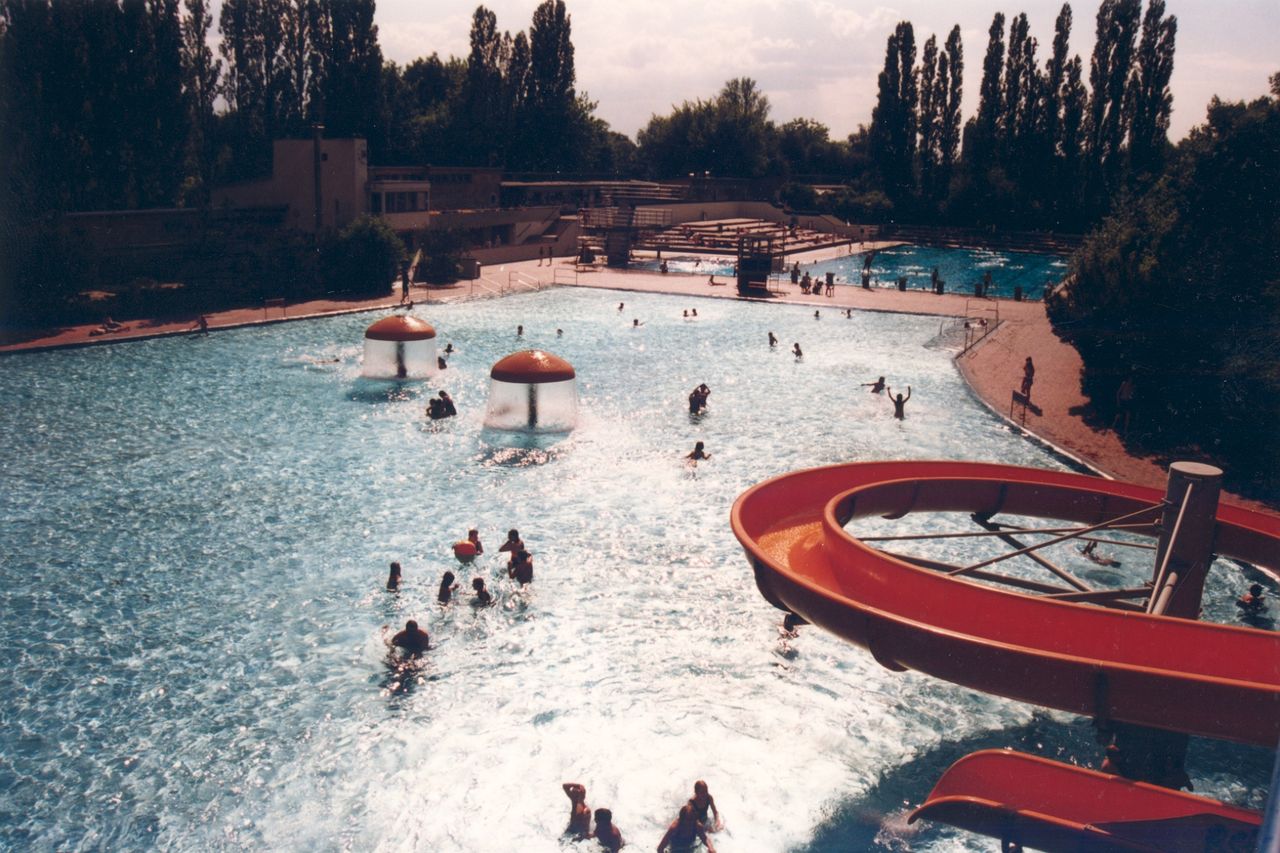 Liegewiese, 50m Schwimmbecken 20 x 50m, Sprunganlage mit 1m /3m /5 m Sprungbrett, großer Nichtschwimmerbereich, Rutsche, Baby-Becken, Buddelkasten, Klettergerüst