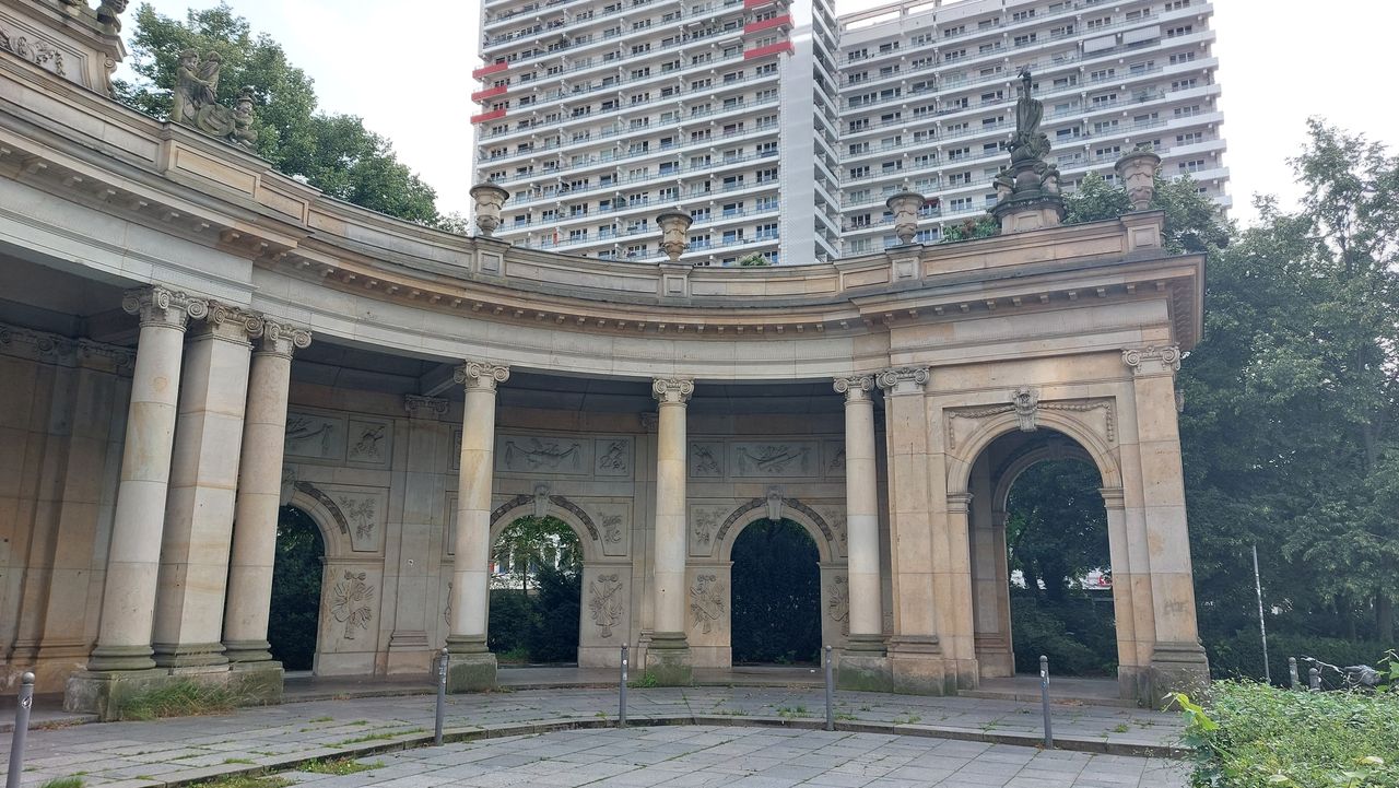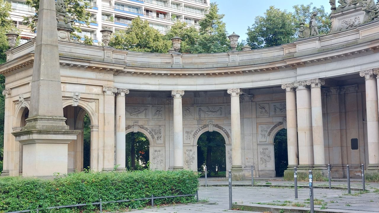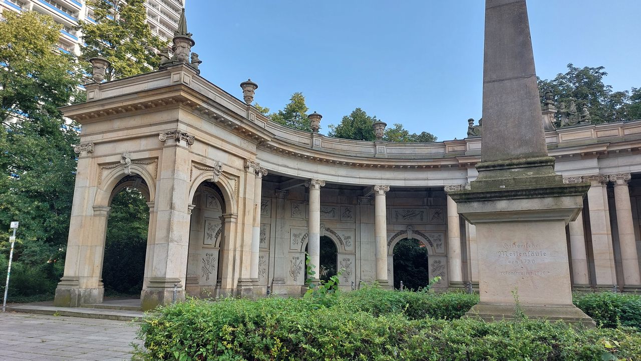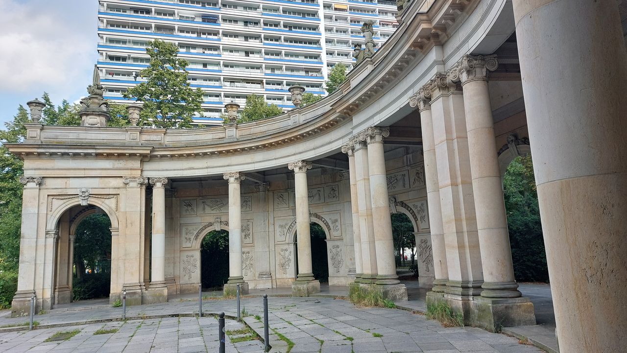 "Die Spittelkolonnaden in Berlin sind ein spätbarockes Schmuckbauwerk von Carl Philipp von Gontard auf dem Marion-Gräfin-Dönhoff-Platz im Ortsteil Mitte in der Nähe des Spittelmarktes. Ursprünglich bestanden sie aus einem Ensemble von zwei halbrund geformten offenen Säulenhallen, die zur Zeit ihrer Errichtung im Jahr 1776 als Einfassung einer Brücke über den südlichen Festungsgraben dienten, der seinerzeit ein unansehnlicher Abwassergraben war." (Zit.nach: de.wikipedia.org)