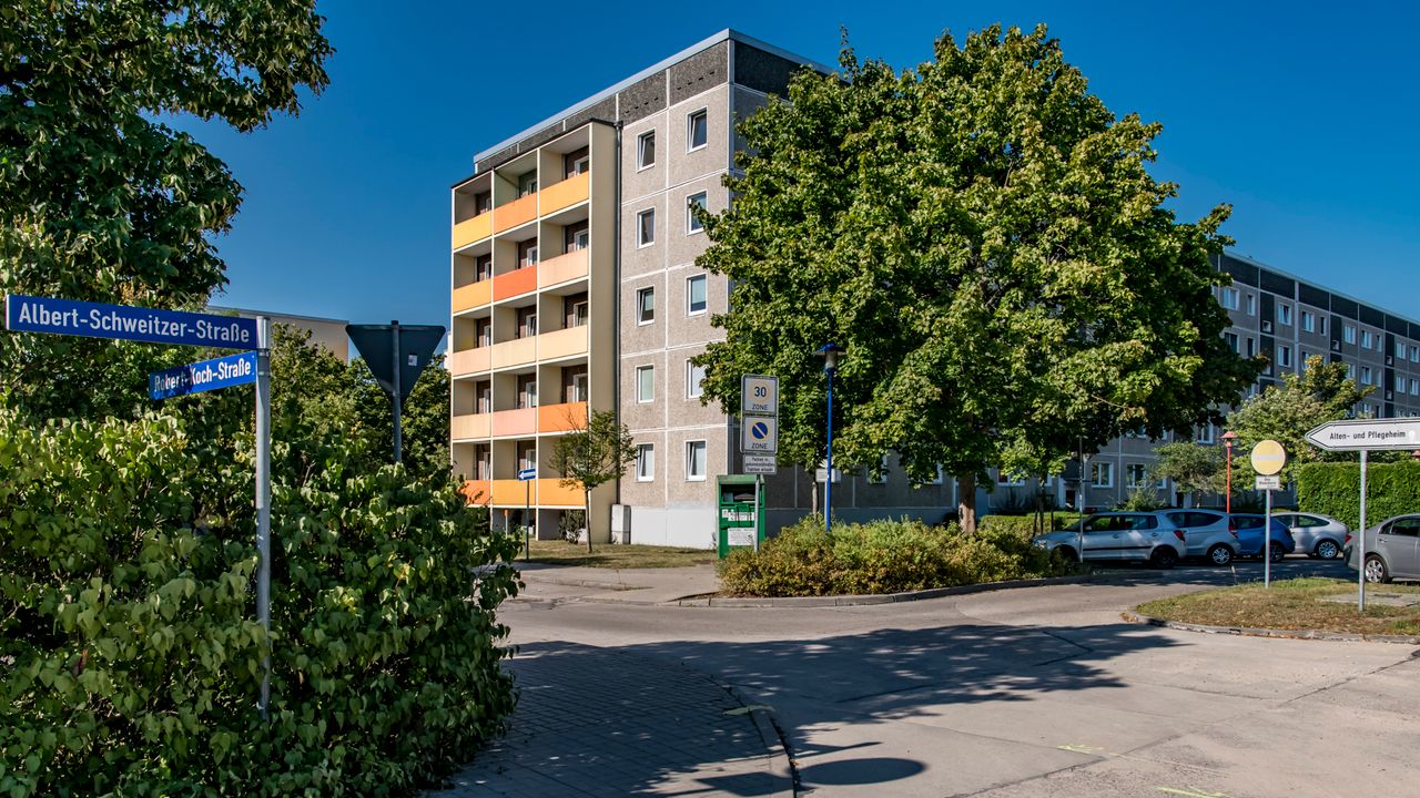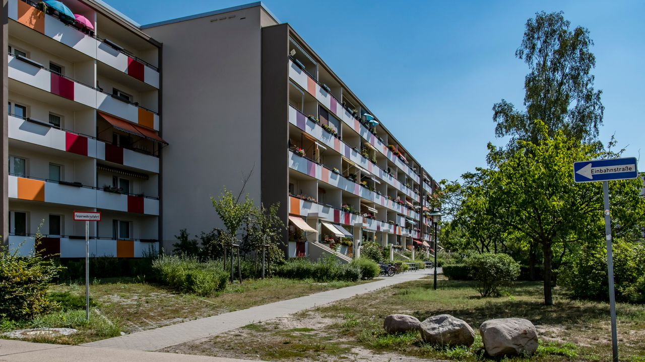 Eine andere Besonderheit ist die am Bahnhof gelegene "Wohnstadt", die städtebaulich und architektonisch in einer Linie mit dem sozialistischen Klassizismus der Berliner Karl-Marx-Allee und der der Wohnstadt in Eisenhüttenstadt zu sehen ist. (Vgl.: cdn.website-editor.net)