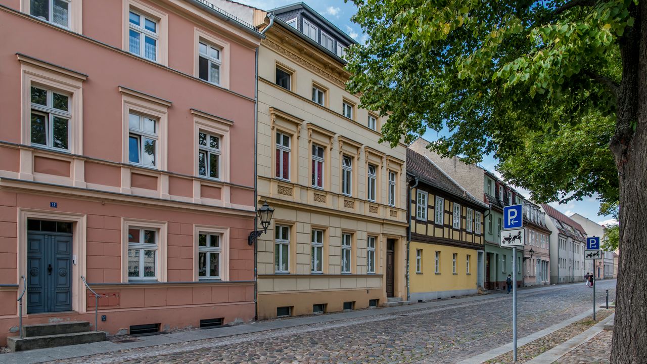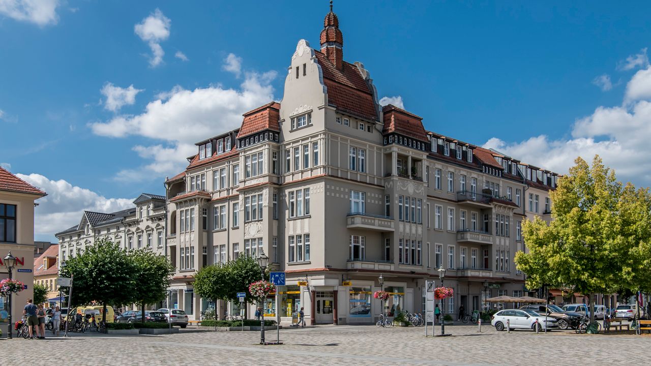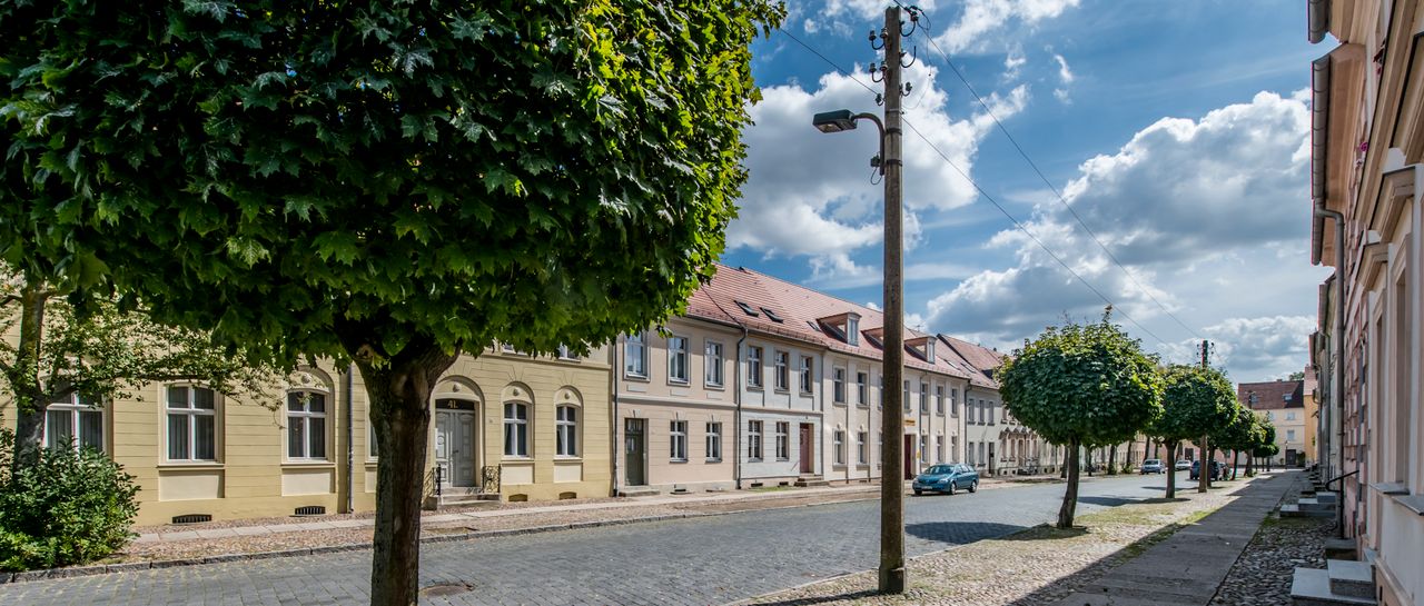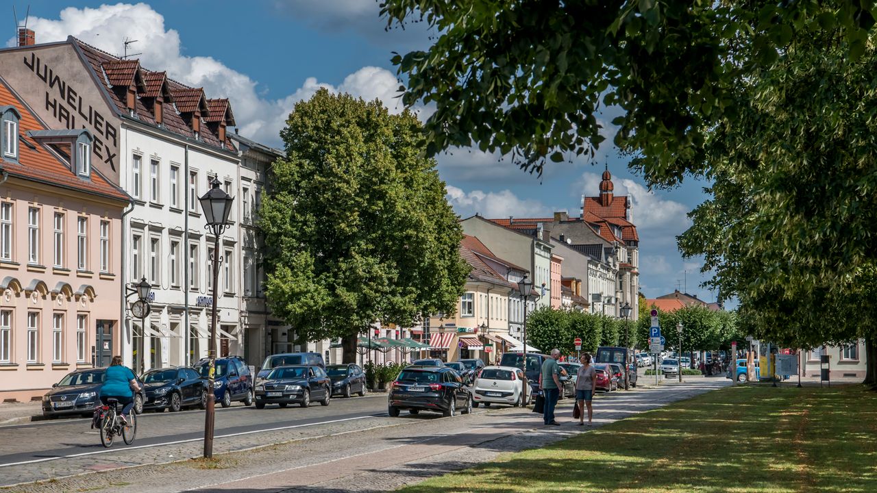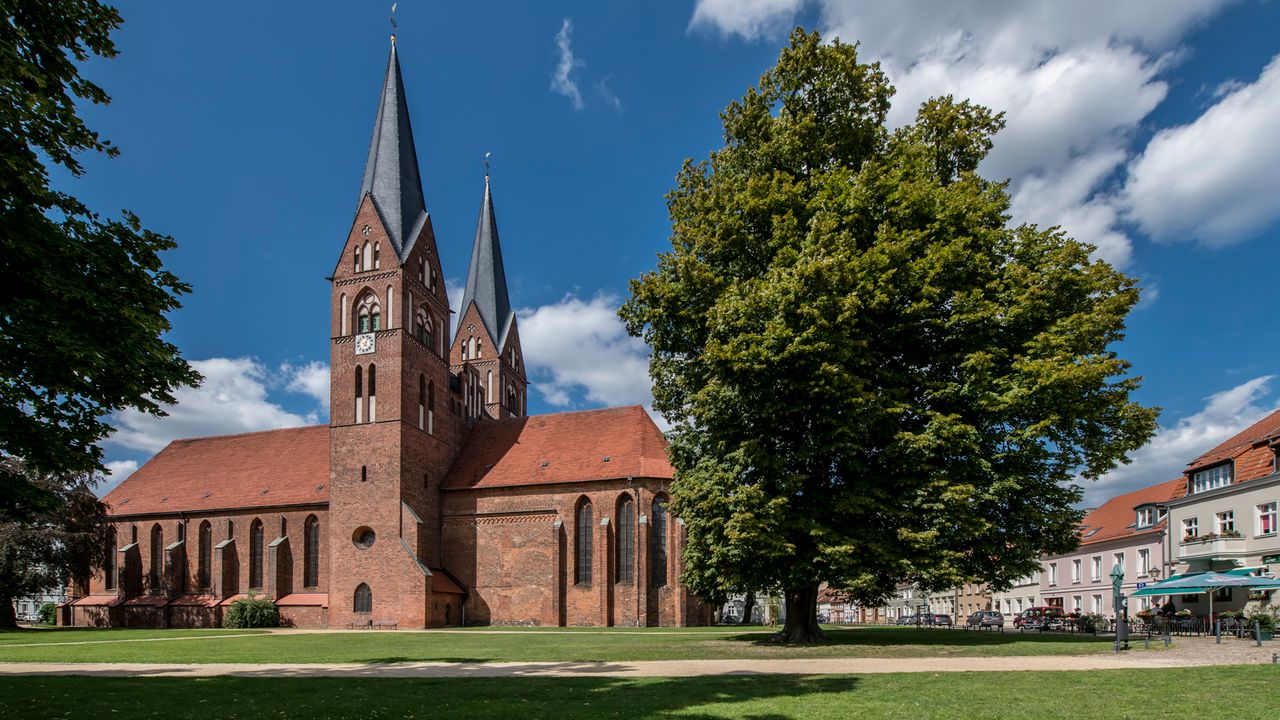 Kleinstadt mit teilweise erhaltener Stadtmauer und historischen Gebäuden, Kastanienbäumen, Kopfsteinpflaster, z.T. Fachwerkbauten, Kirchen und Kloster am Neuruppiner See