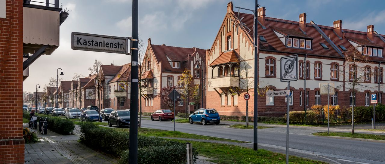 Entscheidend geprägt wird der Ort durch die ab 1899 gebaute „Schwartzkopff-Siedlung“, eine nach dem Unternehmen von Louis Schwartzkopff benannte Arbeitersiedlung der Belle Époque. Die unter Denkmalschutz stehenden ehemaligen Wohnhäuser für Arbeiter und Angestellte des Werkes sind mit Gliederungselementen aus markanten roten Klinkersteinen erbaut. Diese wurden als „märkisch“ empfunden und passen sich dadurch gut in die Region ein. Im Gegensatz zu Berliner Arbeiterwohnungen der gleichen Zeit besitzen alle Wohnungen eine Innentoilette und einen Hausgarten. Bis 1918 war die Siedlung größtenteils fertiggestellt, sie bestand aus 164 Häusern und 820 Werkswohnungen. Dazu gehörten auch Versorgungseinrichtungen, eine Schule sowie ein „Casino“ genanntes Vergnügungslokal mit großem Festsaal. Bis 1926 kamen noch weitere Häuser dazu.[8]