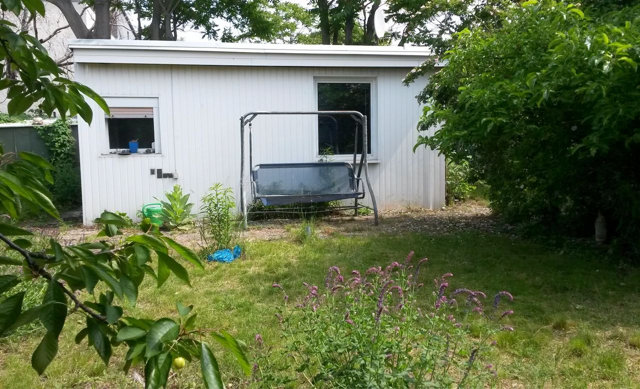 Grosser Garten mit Landurlaub-Atmosphäre, naturnah mit Obstbäumen, Wildwiese, Sträuchern, Teich und Gartenhaus. Ruhig aber zentral gelegen, mit guten Parkmöglichkeiten. Eckgrundstück an der Uferpromenade des Schifffahrtskanals mit (noch) unverbautem Blick in alle Himmelsrichtungen, weiterführend angrenzend an ein Ensemble von Kreativstudios.