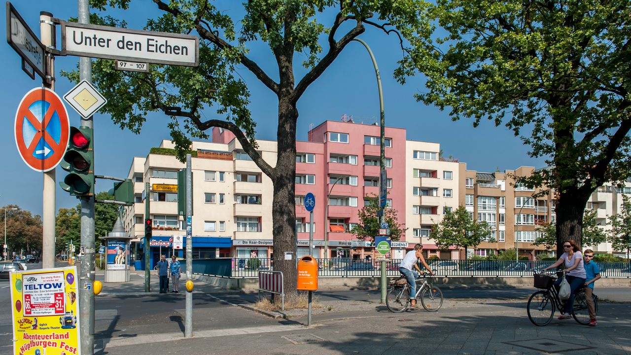 An das alte Dorf Giesensdorf erinnern noch die Dorfkirche und das Gemeindehaus am Ostpreußendamm. Als ein Symbol für die Zeit der Villenbebauung steht auf dem Oberhofer Platz die Petruskirche.“