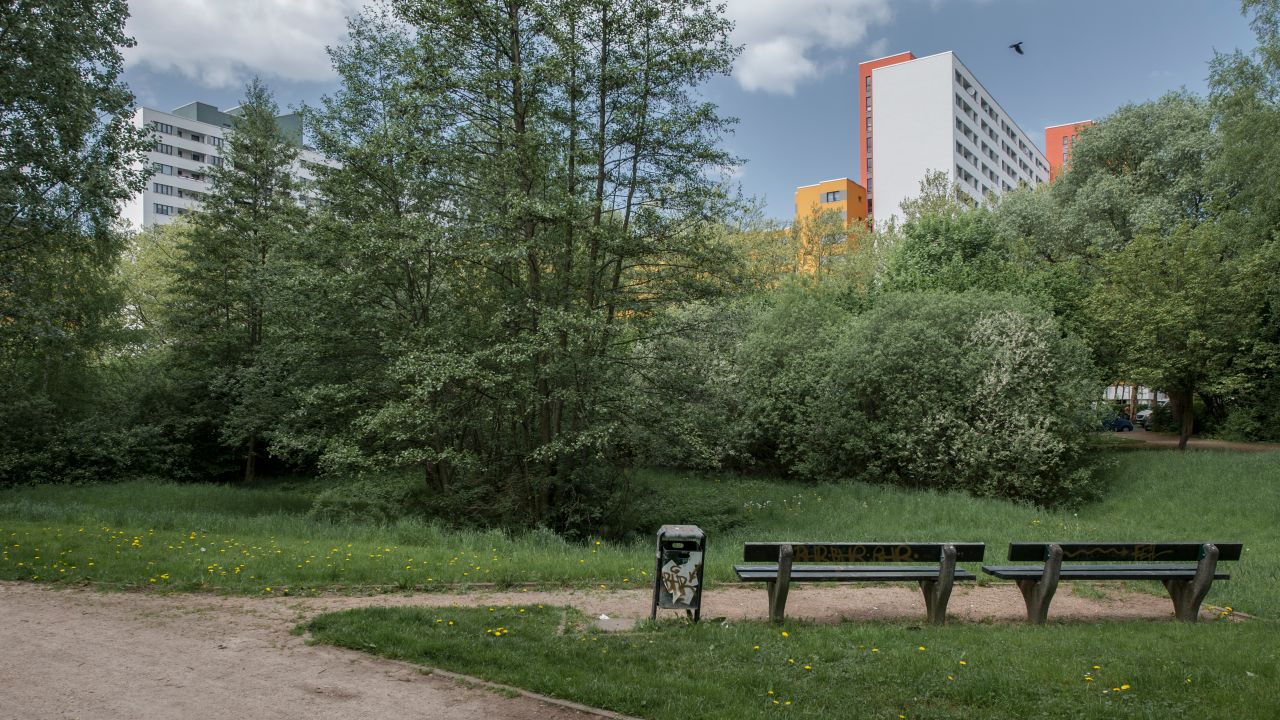 Die Trabantenstadt liegt eingebettet in Felder, Wald und Wiesen.