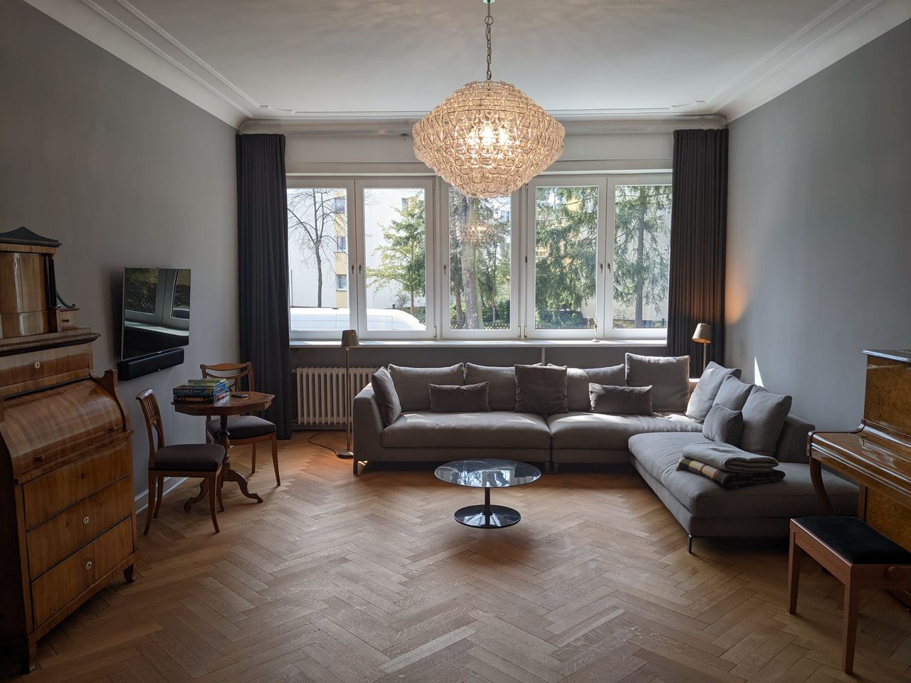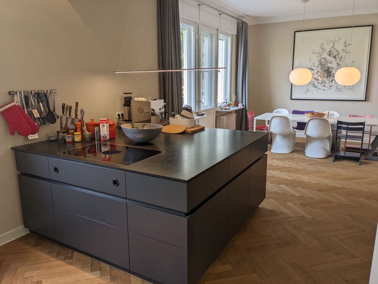 Stilvolle 30er Jahre Villa mit Parkettboden/Original-Flirßen, großem Küchenblock, modern ausgebautem DG, großer Terrasse auf 1200qm Grundstück in Vollenvorort Berlins.