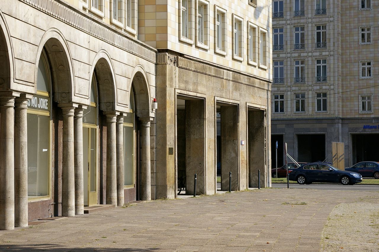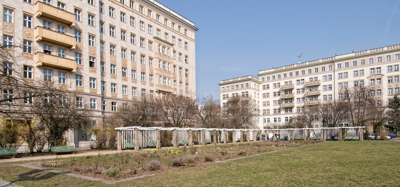 Die Karl-Marx-Allee mit dem Strausberger Platz in seiner Mitte verbindet Berlin-Mitte und Berlin-Friedrichshain. Der längere, Friedrichshainer Abschnitt wurde 1950 errichtet und ist durch Wohnblöcke und Türme in einem Stilmix aus Sozialistischem Klassizismus und preußischer Schinkelschule geprägt. Den Abschnitt in Mitte, der den Strausberger Platz mit dem Alexanderplatz verbindet, dominieren Plattenbauten aus den 1960er Jahren. Die Turmbauten am Frankfurter Tor und am Strausberger Platz vom Architekten Hermann Henselmann sind die städtebaulichen Höhepunkte der Karl-Marx-Allee. Weitere architektonisch bemerkenswerten Bauten sind das Kino International und das Café Moskau der Karl-Marx-Allee.