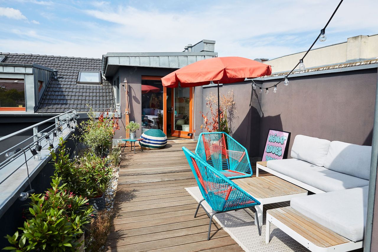 This open style loft Home Studio is certainly something special. Set in a Studio54 inspired building, it comes with everything a creative heart desires: Two rooftop terraces, open floor plan, sunset views, super quiet and cozy although located in Berlin's center, a quirky floor plan, and the most amazing designer interior that makes this location so incredibly unique.