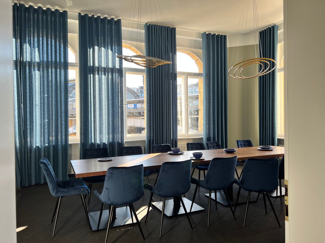 SALON von 35 qm mit Blick auf die Spree, den S-Bahnhof Friedrichstraße, die S-Bahn.