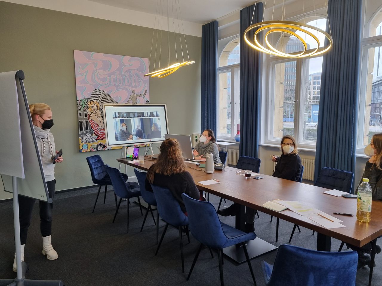 Altbau, 4,50 m hohe Decken, klassische Büroräume, riesiger Flur, ein SALON, eine BAR, ein STUDIO für Video, Foto, Sendungen.