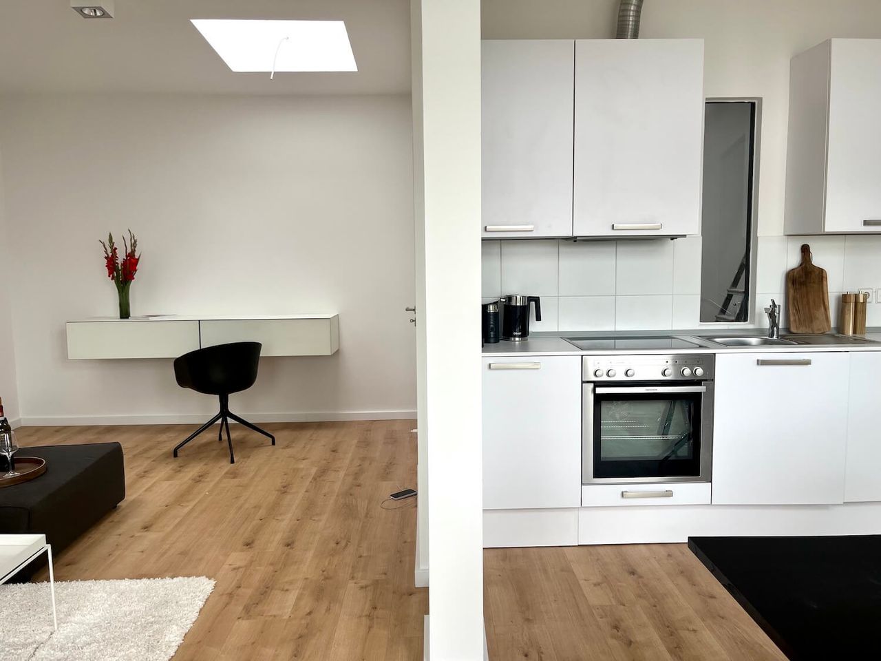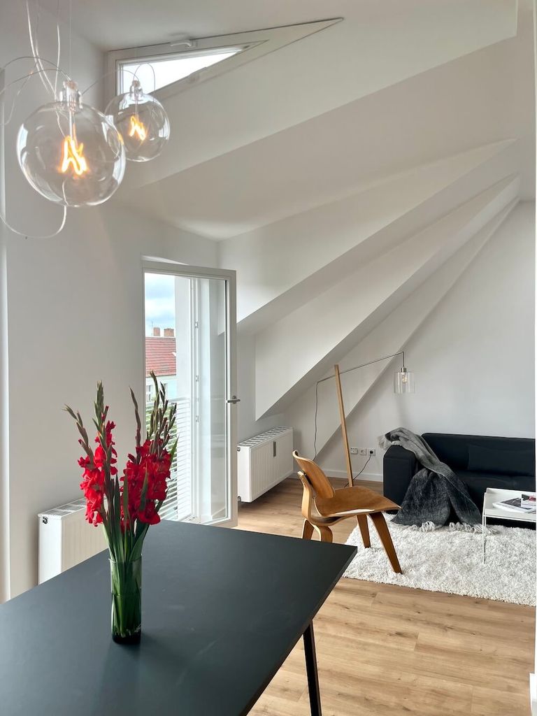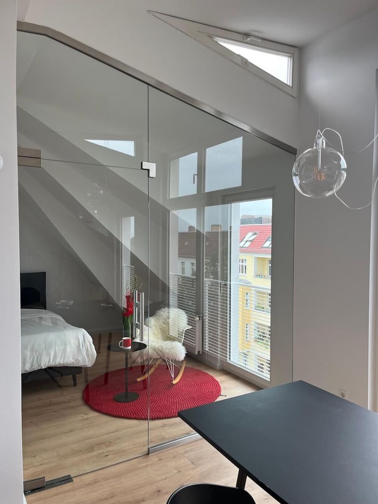 Step into this bright, unique, sun-filled two-room apartment, where sleek modern design meets timeless classics from Vitra and Hay. The glass wall and door separating the bedroom create an airy, open feel, while the south-facing windows flood every corner with natural light, making it the perfect backdrop for a photo shoot. Click "Message Home Studio" via the link below to contact owner directly and feel free to also browse our other locations: