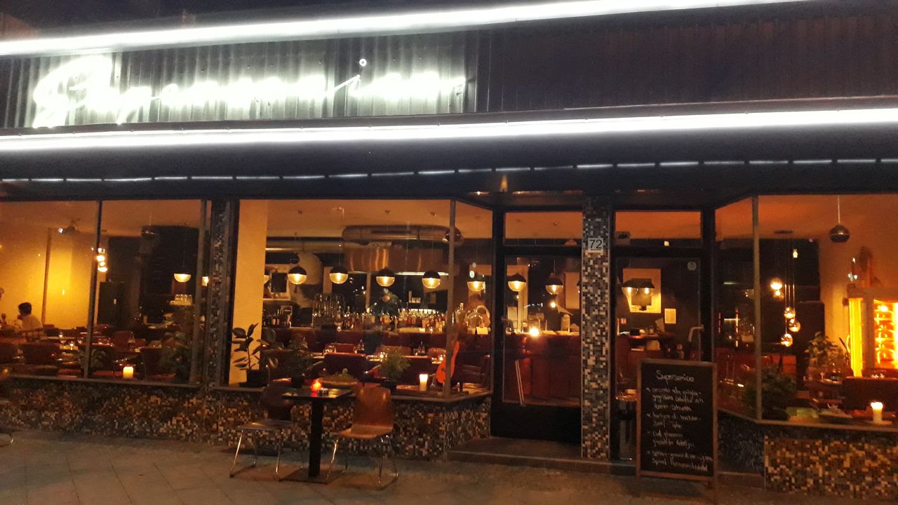 Das Pavillon-Lokal liegt zentral gelegen, mitten in Berlin am Mauerpark. Der stilvolle 60er Jahre Look erinnert von außen an ein Diner und Innen, mit wunderschönen italienischen Stühlen, und frischem Design an ein unkompliziertes Restaurant. Ein Highlight ist die große Bar mit Showküche, die übergroßen Fenster und die abendliche Lichtgestaltung, welche schon in zahlreichen Musikvideos und Filmen beeindruckten. Das Restaurant verfügt über eine kleine Rosenterrasse im urbanen Gebiet und Sitzmöglichkeiten zur Hauptstraße. Das Restaurant hat eine Größe von 120 m² mit 50 Sitz- und 11 Barplätzen.