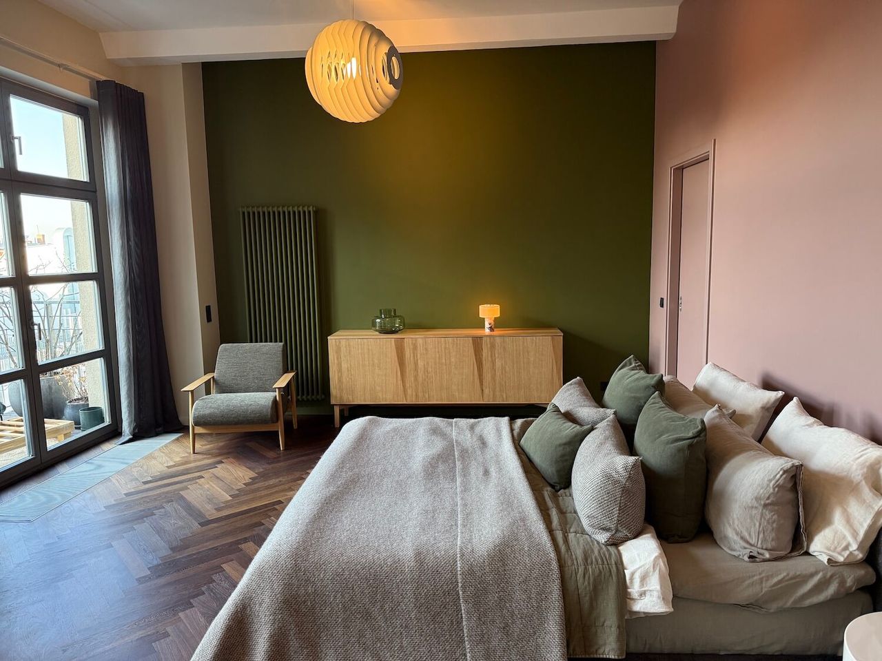 What was once a former chocolate factory, is now a luxurious modern Home Studio decked with tasteful trimmings. From dark Panga Panga wood flooring and an array of designer lamps and furnishings, this setting is nothing short of stylish. With a beautiful open plan design, soft colour palette throughout, 2 balconies and a spacious bathroom that feels like a wellness spa, this set is feast for the eyes - and creative productions!