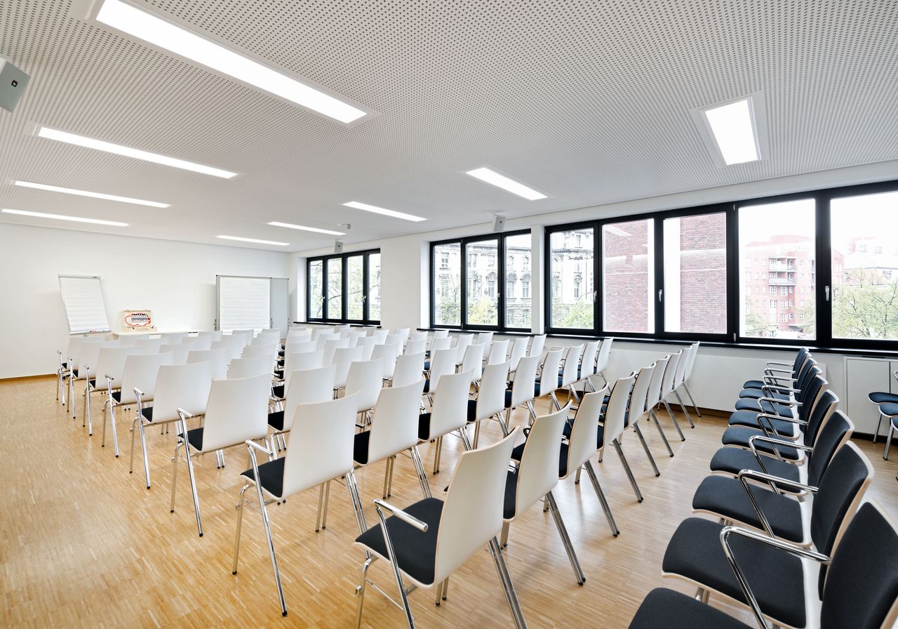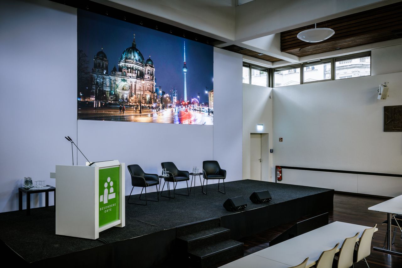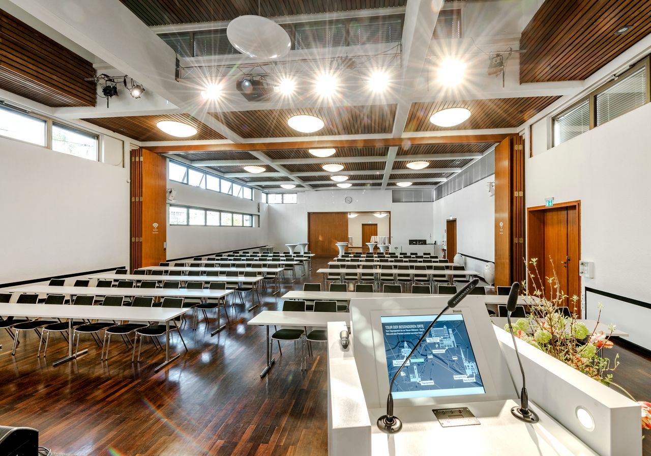 Das Tagungswerk Berlin bietet Platz für bis zu 260 Gäste und ist mit seinem teilbaren Saal mit LED-Wand, fünf großen Seminarräumen und luftigen Cateringflächen mit Blick auf den Lindenhof ideal für Tagungen geeignet. Großzügige, bodentiefe Fenster sorgen für eine helle und einladende Atmosphäre.