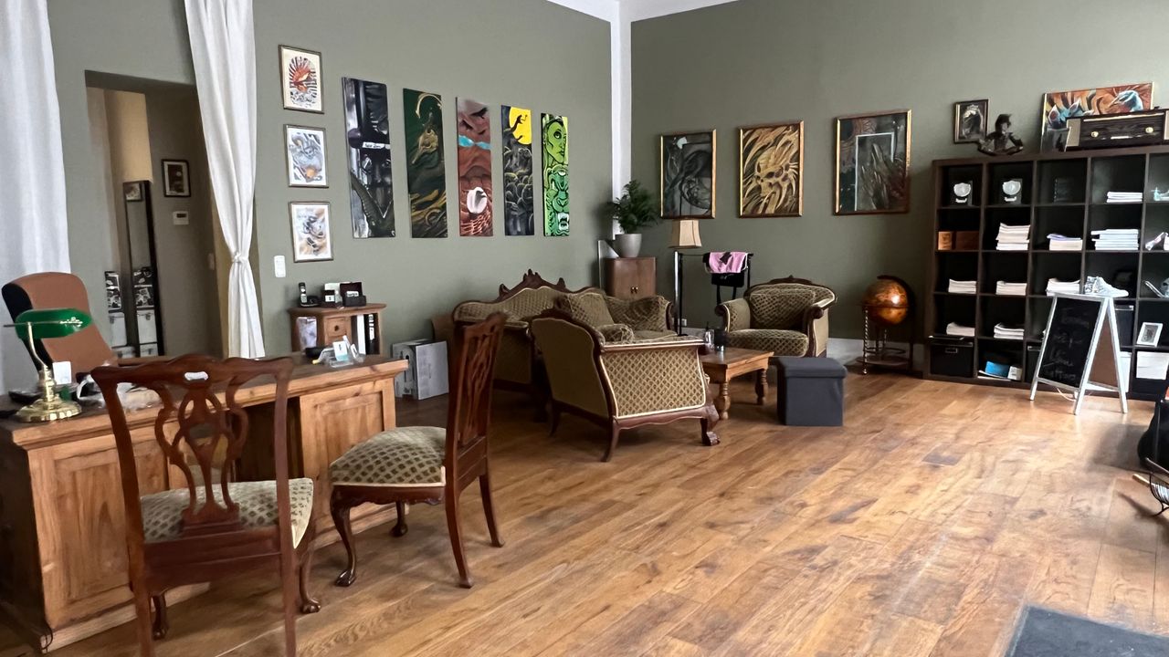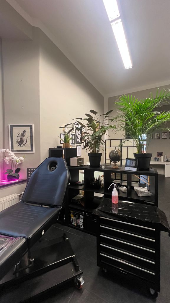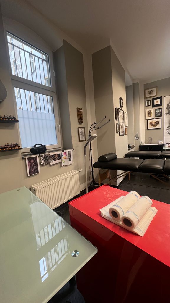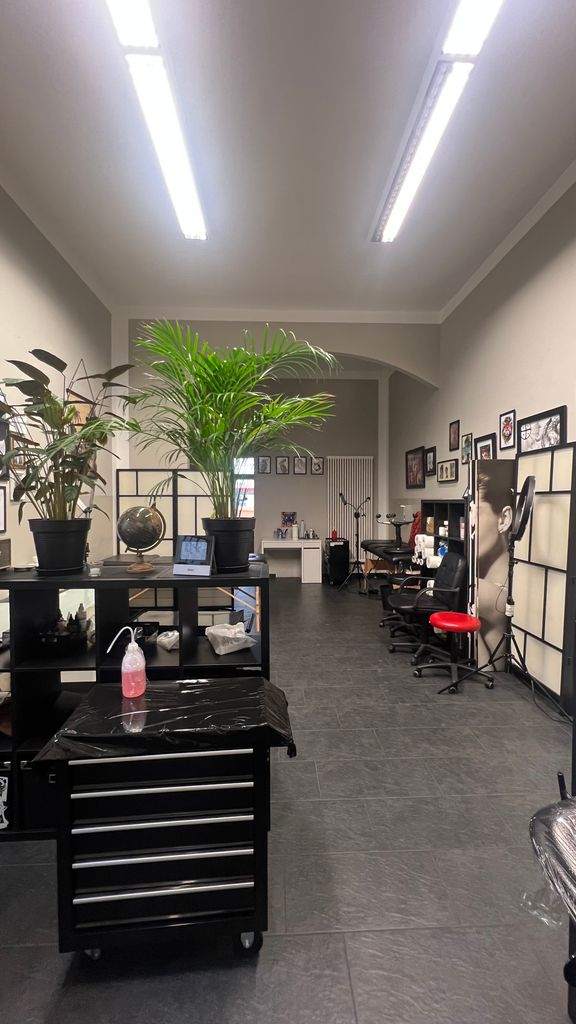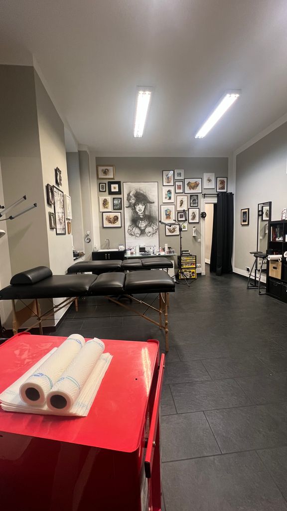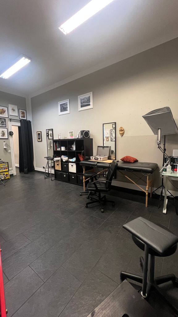 Ein Klassisches Tattoostudio mit einem Empfangsraum ,zwei Studioräume und Toilette.