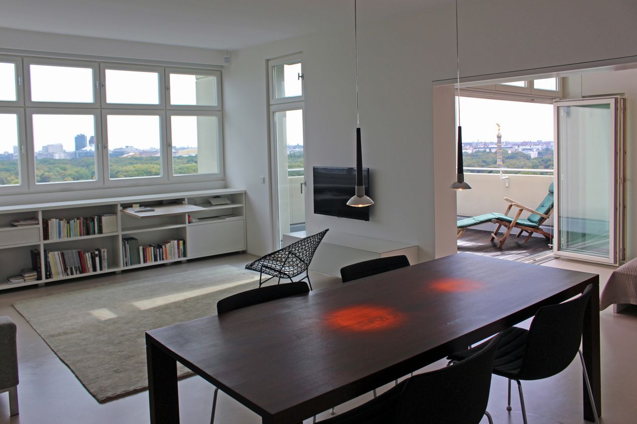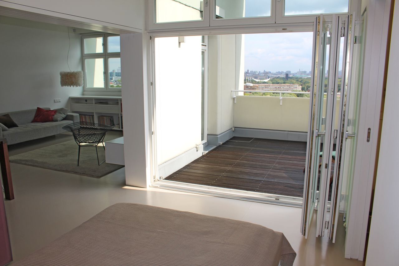 Achtung: Drehort ist nur die Terrasse mit ihrem außergewöhnlichen Panoramablick über Berlin. ("Topshot"). Die Wohnung selbst steht nicht als Drehort zur Verfügung.