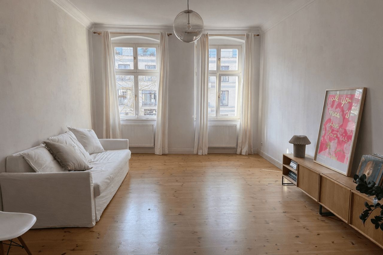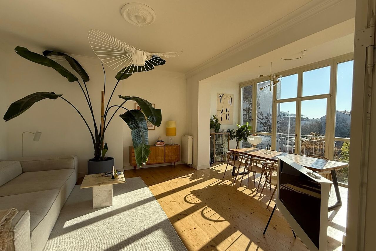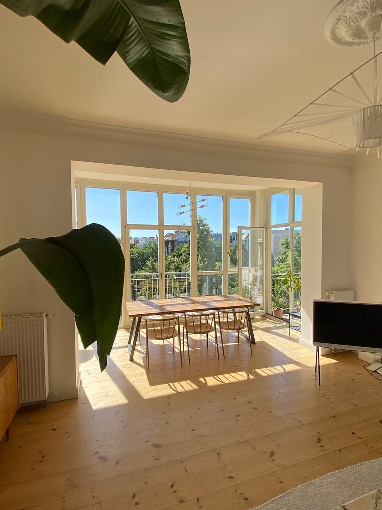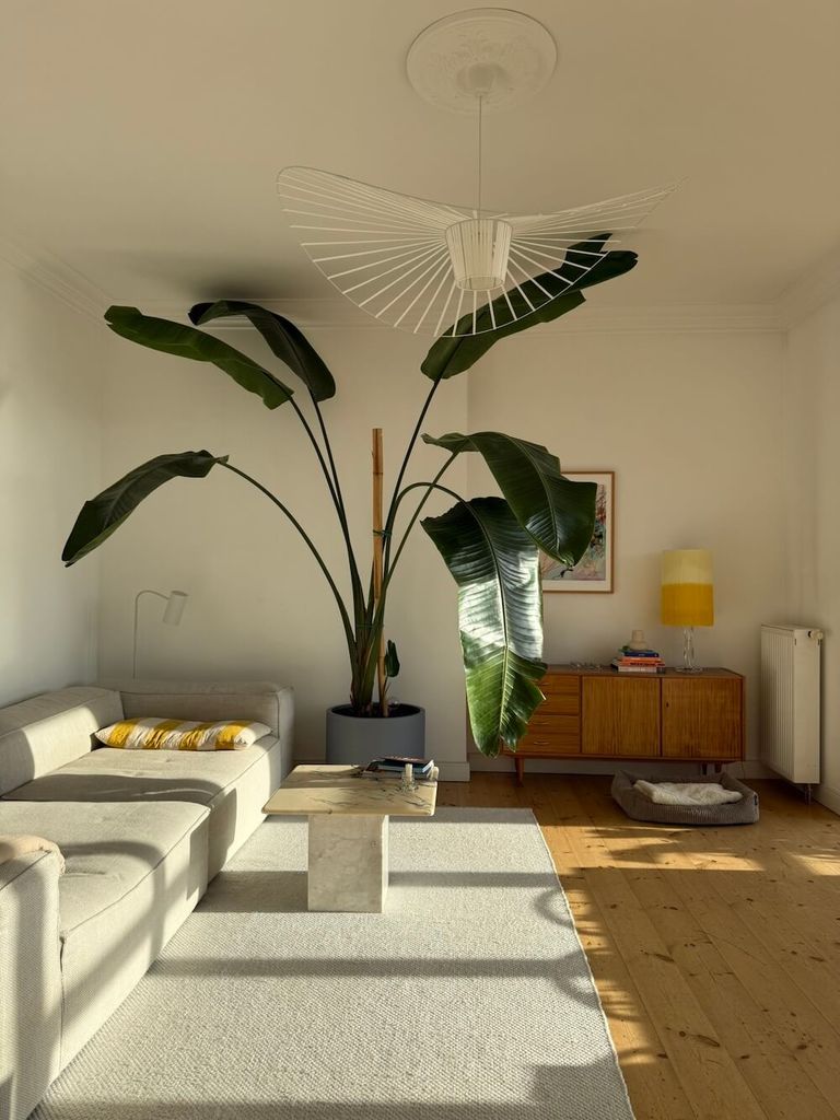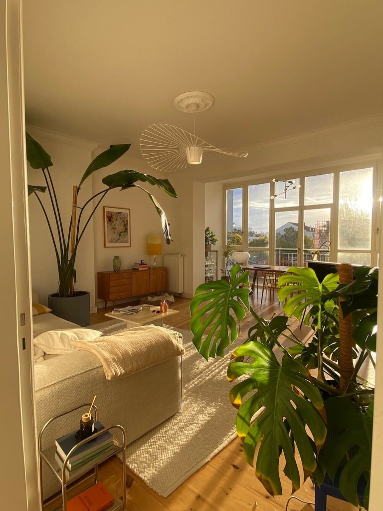 ENGLISH: Huge floor-to-ceiling windows fill the space with natural light from morning until around 3 p.m., creating beautiful shifting shadows throughout the day. Bright, inviting, and effortlessly styled with Scandinavian decor, the space is anchored by a statement XL plant that brings a fresh, organic feel. Clean, calm, and full of light ~ ideal for shoots that lean into a soft, natural aesthetic. homemadestudio.com