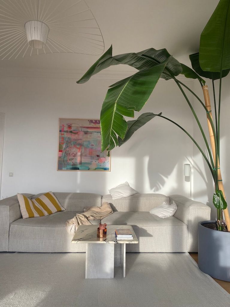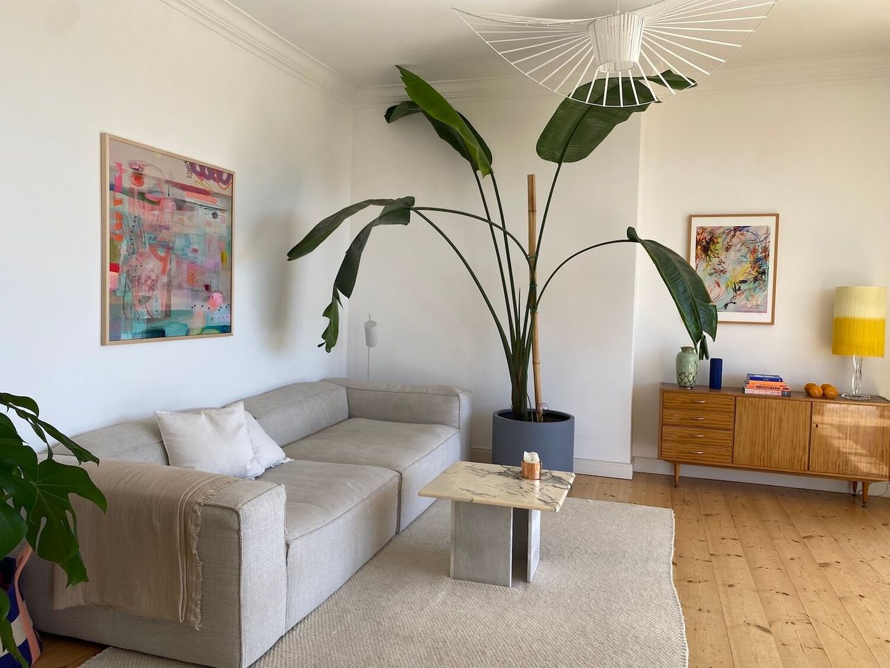 DEUTSCH: Riesige, raumhohe Fenster durchfluten den Raum von morgens bis etwa 15 Uhr mit Tageslicht und sorgen den ganzen Tag über für wunderschöne, sich verändernde Schatten. Der helle, einladende Raum ist mühelos im skandinavischen Stil eingerichtet und wird durch eine auffällige XL-Pflanze dominiert, die für eine frische, natürliche Atmosphäre sorgt. Klar, ruhig und lichtdurchflutet – ideal für Fotoshootings, die auf eine sanfte, natürliche Ästhetik setzen. homemadestudio.com