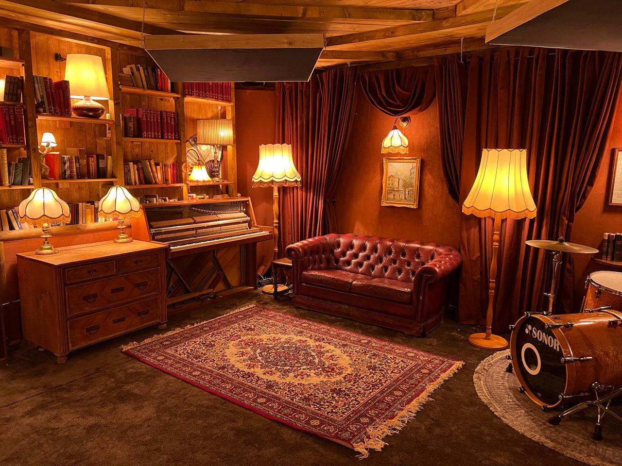 If you are looking for a unique location for your video, filming sessions or photoshoot we have a selection of boutique rooms in various styles, loosely themed on 1920s and 1930s British colonial or New York speakeasy atmospheres. We are primarily a music production studio so also have rooms with technical equipment and instruments. Feel free to contact us.