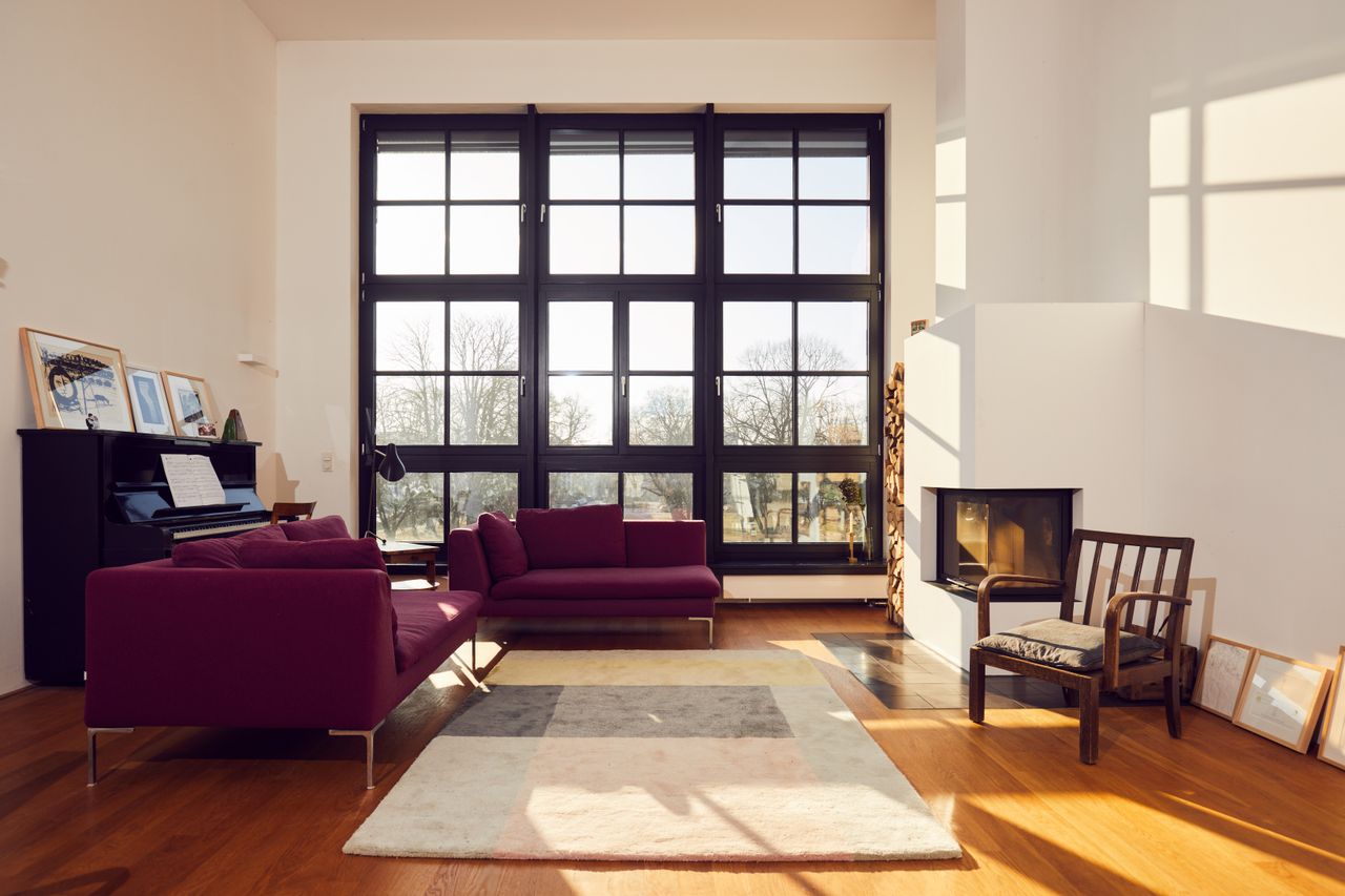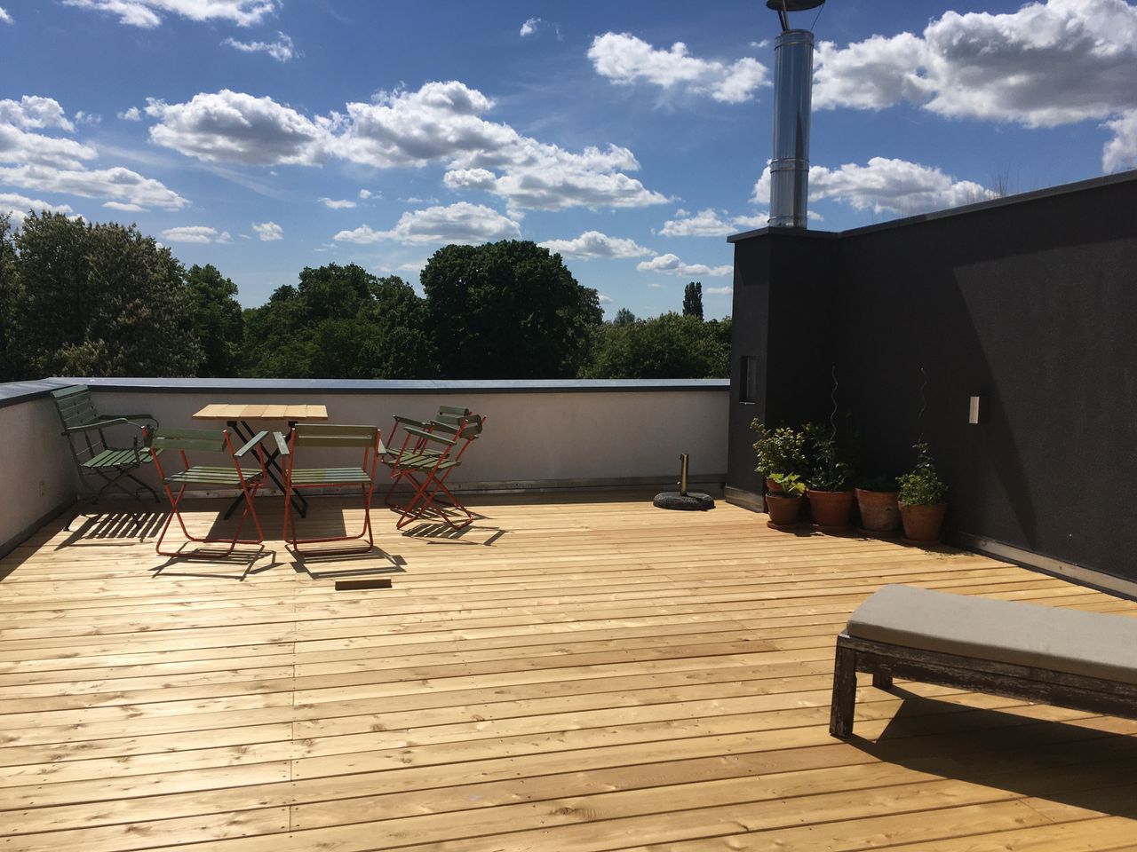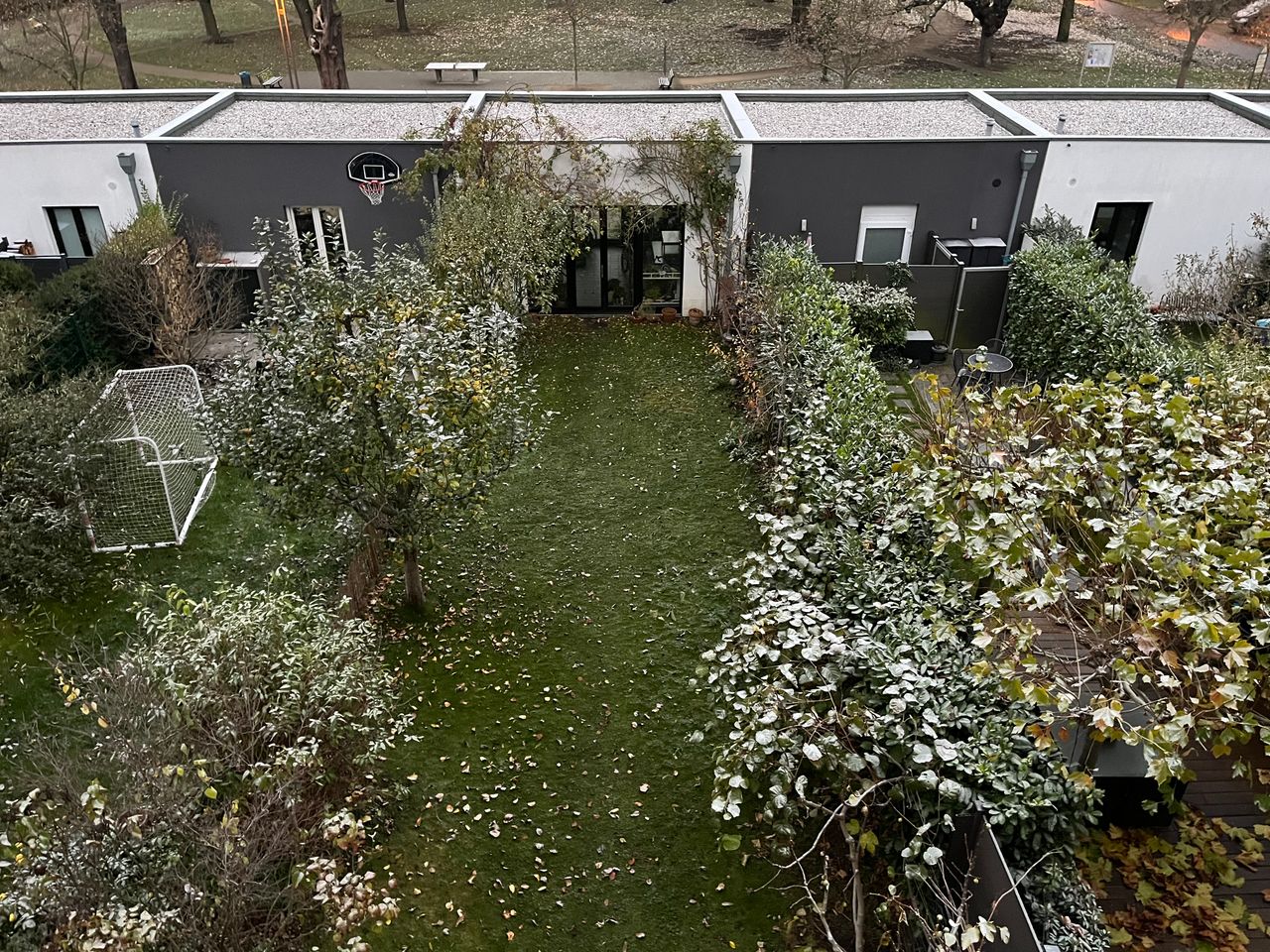 Modern townhouse, terraced house, built in 2008 in Bauhaus-style. Spacious and bright. Three floors, garden, roof-terrace, garden house. Family house with three children's rooms, two studies, open kitchen-living area, living room with 4.50m high ceiling and big atelier window.