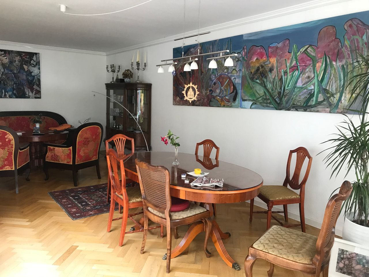 Ein sehr schöner Bungalow mit ca. 700 qm Grundstück und Sauna sowie Swimmingpool liegt inmitten eines kleinen Parks mit Sportanlagen. Im Erdgeschoss befindet sich ein zu nutzender Arbeitsraum, ein Bad nebst Toilette und weiterer Gästetoilette. Ein relativ großer Wohnbereich, eine kleine Küche. Ein Schlafzimmer ist ebenfalls vorhanden. Die Einrichtung ist zum Teil sehr individuell mit Möbeln, Kunstgegenständen, Büchern, Bildern etc. Das Wohnzimmer wirkt sehr hell durch große und viele Fenster.