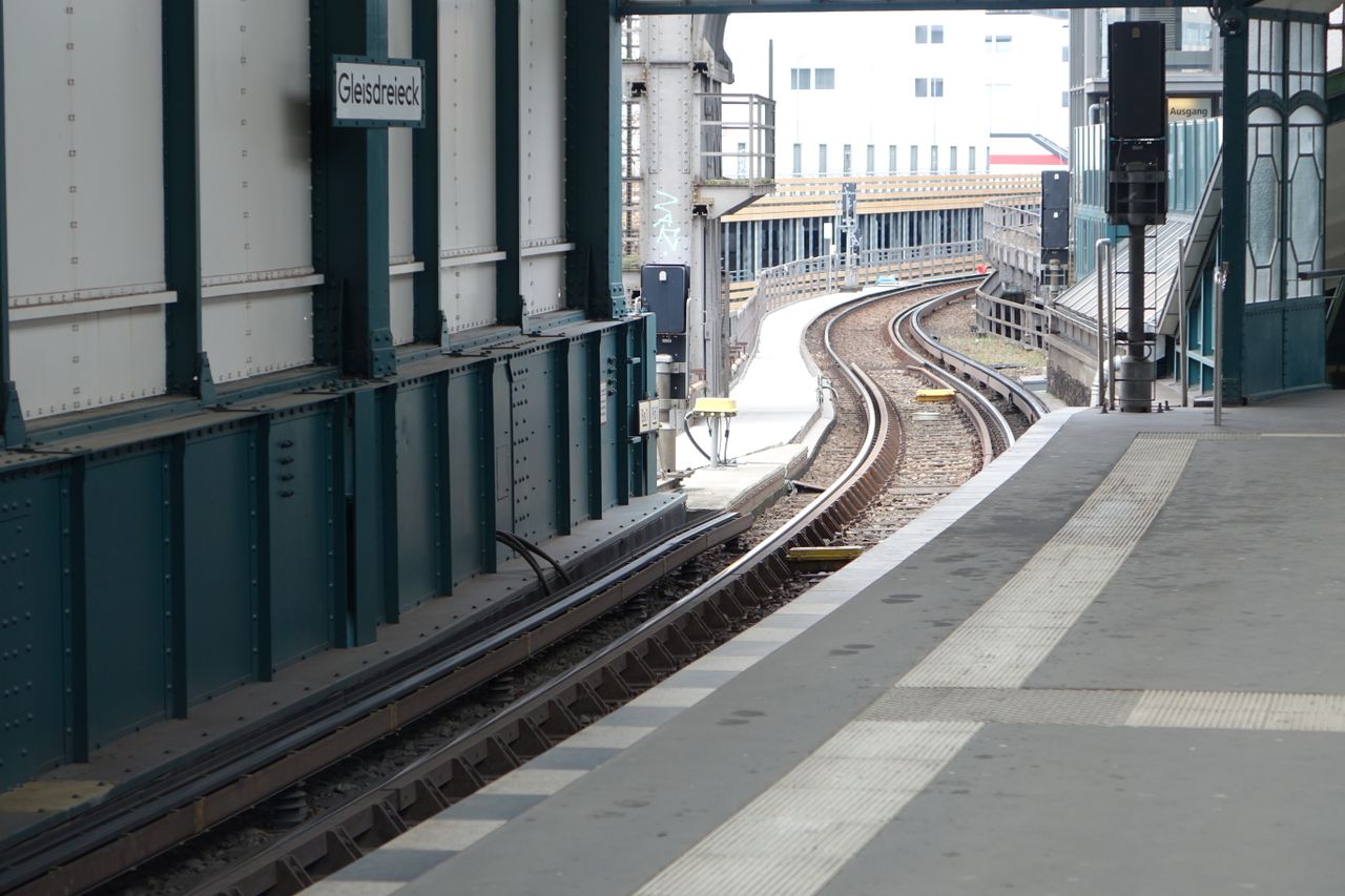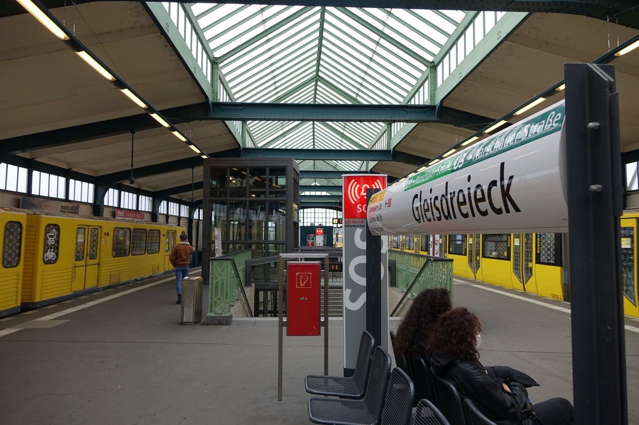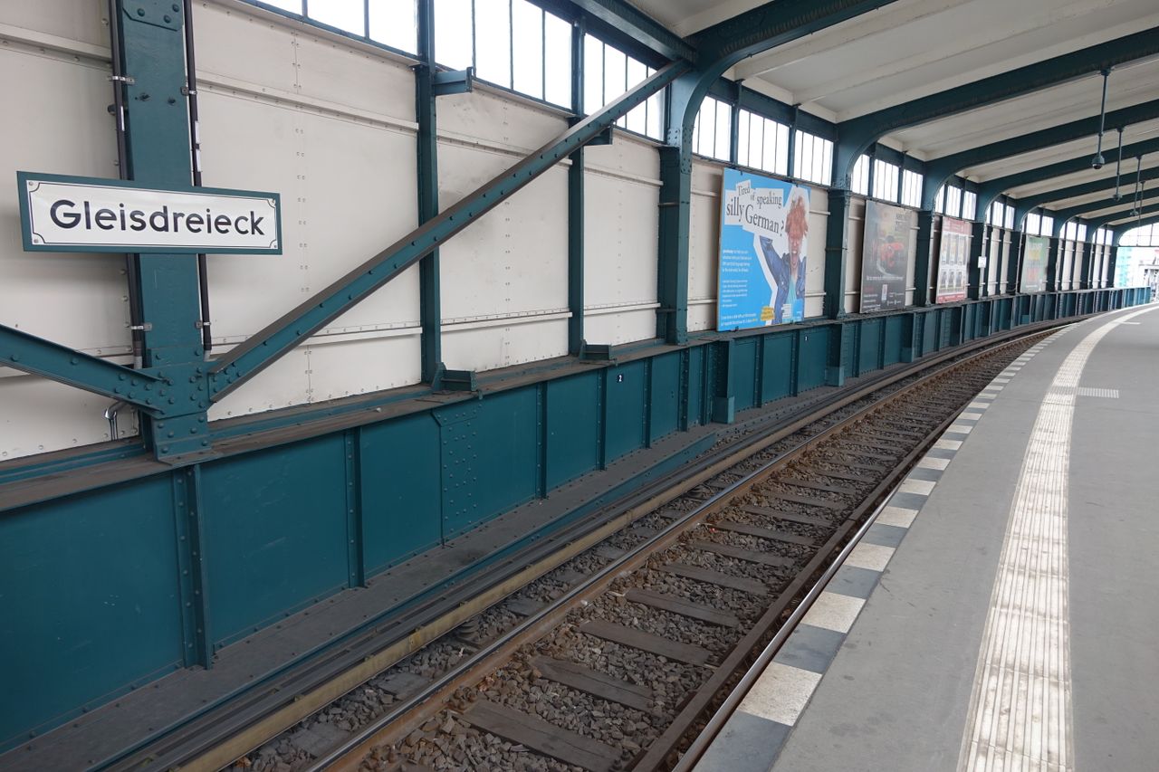 Der Kreuzungsbahnhof Gleisdreieck entstand 1912/13 nach Plänen von Sepp Kaiser (1872-1936), die Schienenstränge bildeten dabei ein Gleisdreieck.