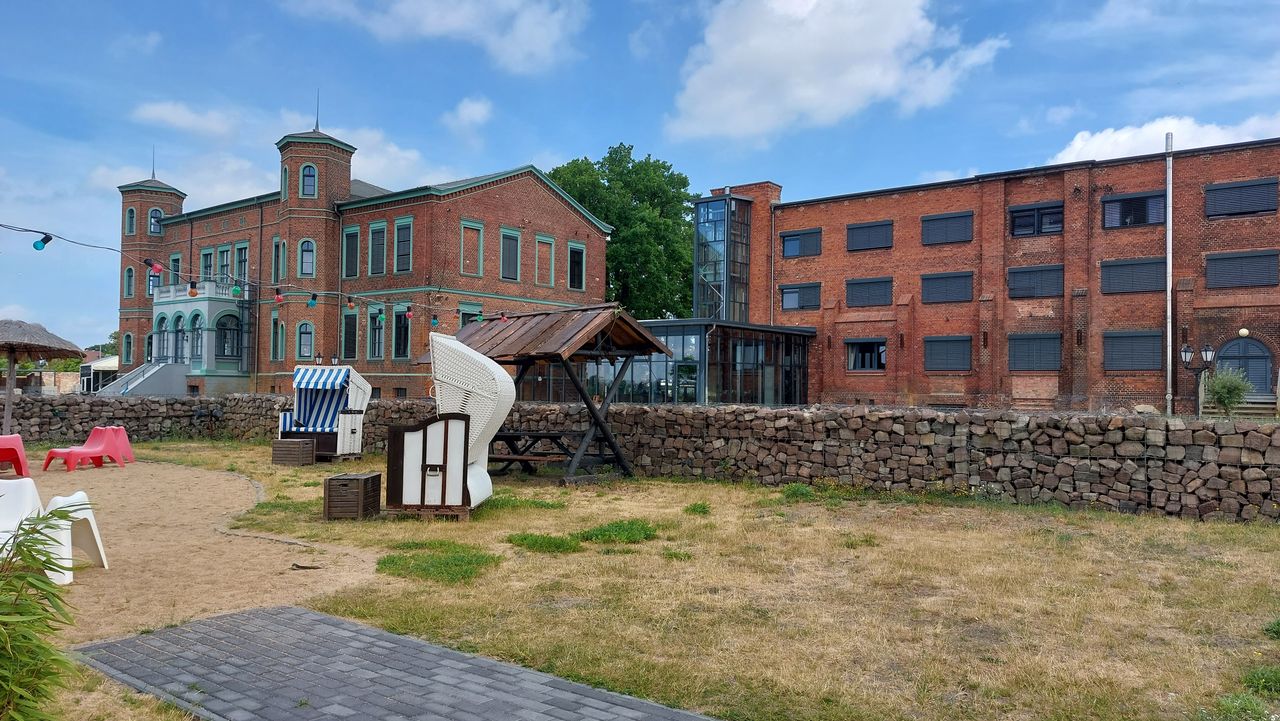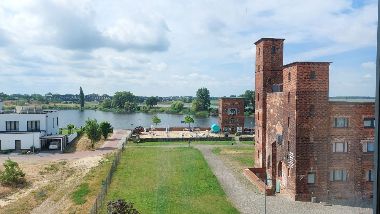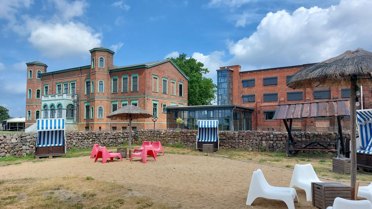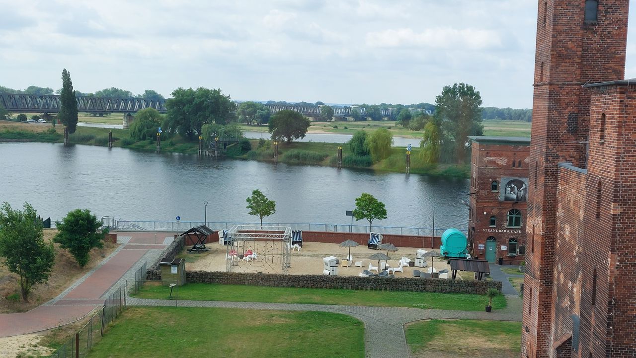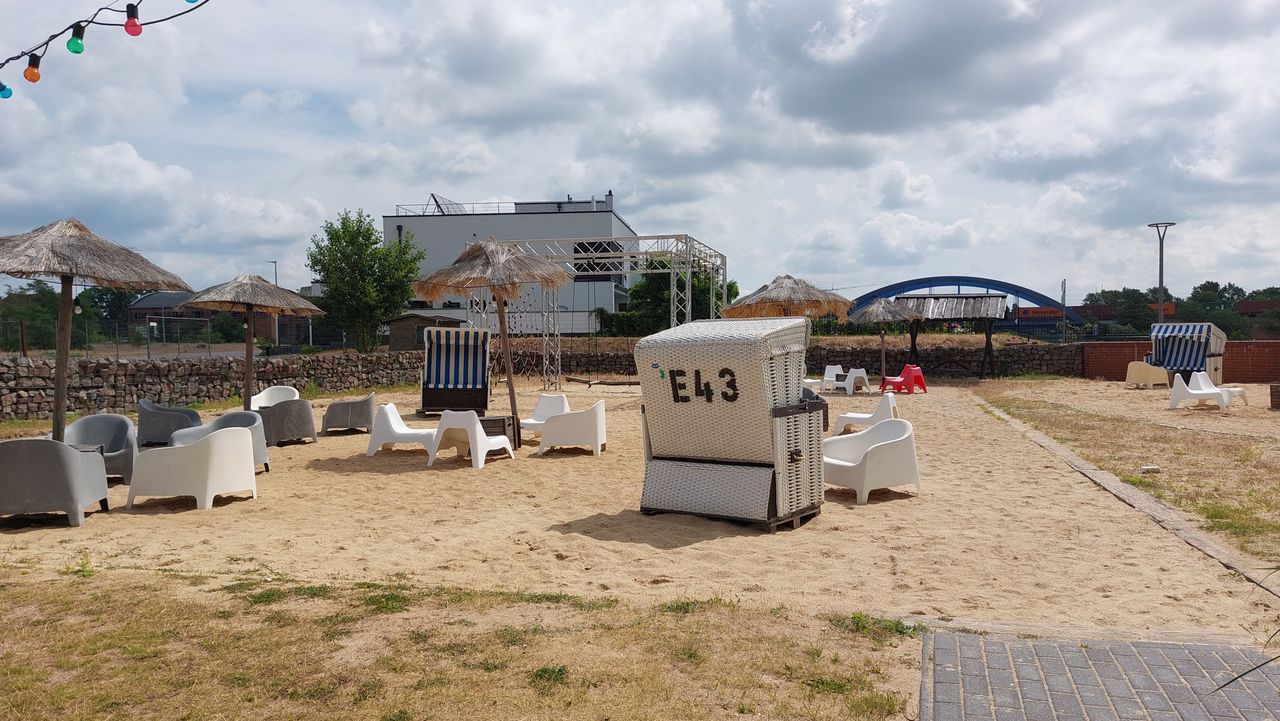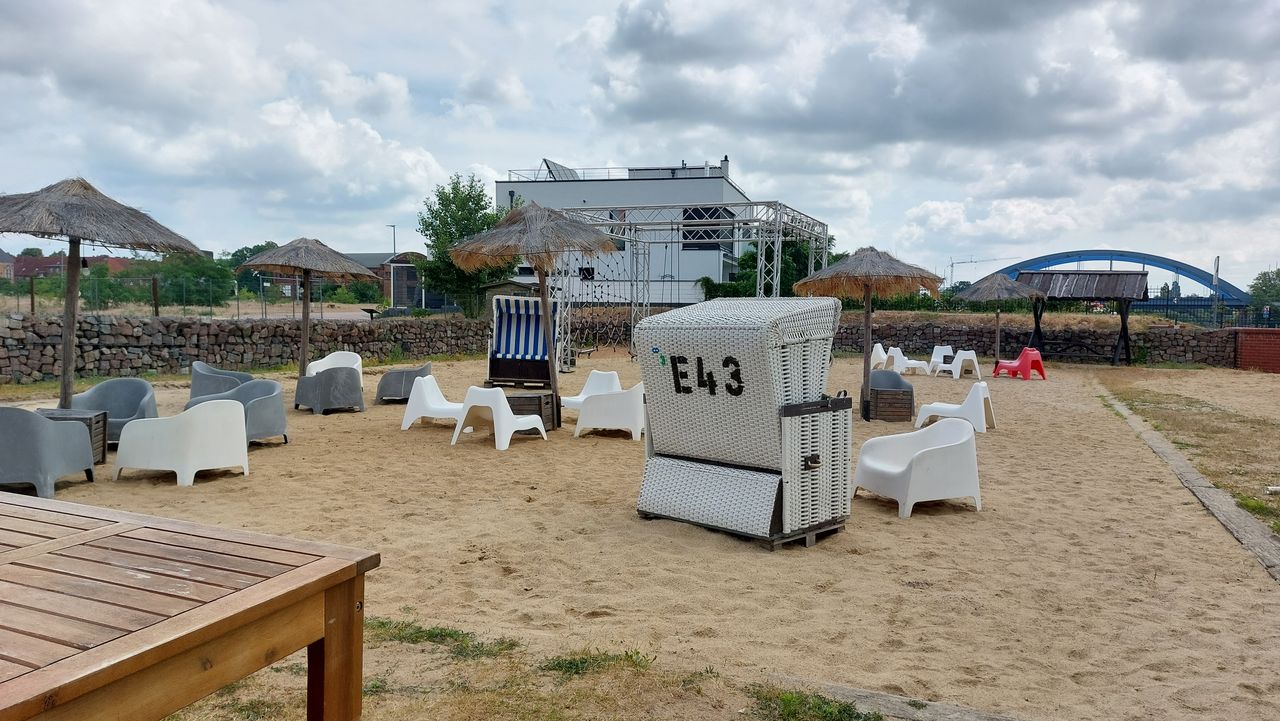 Der Uferturm, der früher als Saugturm zum Entladen der Schiffe genutzt wurde, dient heute als Strandbar. Der 3 stöckige Turm ist umgeben von einem attraktiven Außengelände mit Verweilzonen auf Rasen- und Sandflächen.