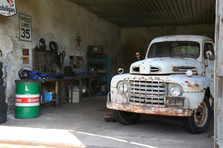 Foto-und Filmstudio im Stil einer alten Auto Werkstatt mit US Thematik. Derzeit stehen zwei US Pick-up trucks in der Garage. Beide nicht fahrtauglich, aber trotzdem insofern bewegbar als man sie aus der Garage ziehen und auch im Außenbereich einsetzen kann. Die Garage hat eine Größe von ca. 140 qm. Deckenhöhe ca. 4 Meter und steht auf einem Gutshof deren Freifläche man ebenfalls nutzen kann. Die Garage hat eine Südwest- Ausrichtung. Stromanschluß nur über 2000 kw Powerbank , die Solar betrieben wird. Einfache Sanitärbereiche auf dem Hof verfügbar. Die Location befindet sich in Schönwalde-Glien, westlich von Berlin nahe Falkensee.