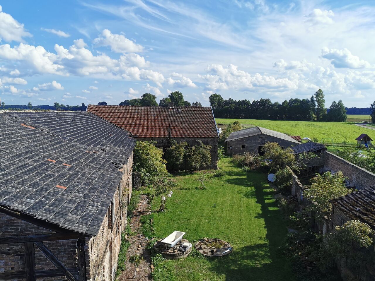 Das Feld besteht zum Teil aus einem lang gezogenen, alten Fundament, das uneingeschränkt genutzt werden kann. Die Ackerfläche ist hingegen teilweise verpachtet, sodass ggf. Rücksicht auf Pflanzen genommen werden muss.