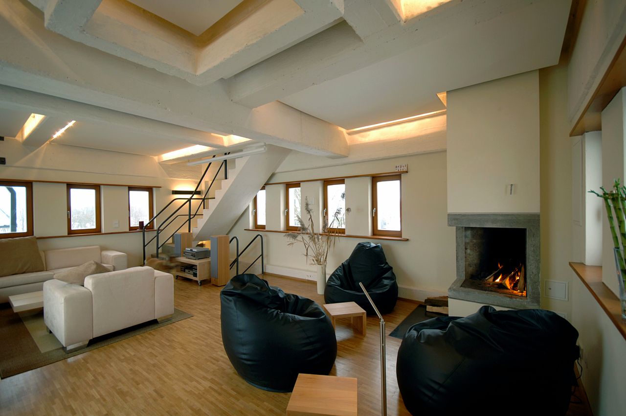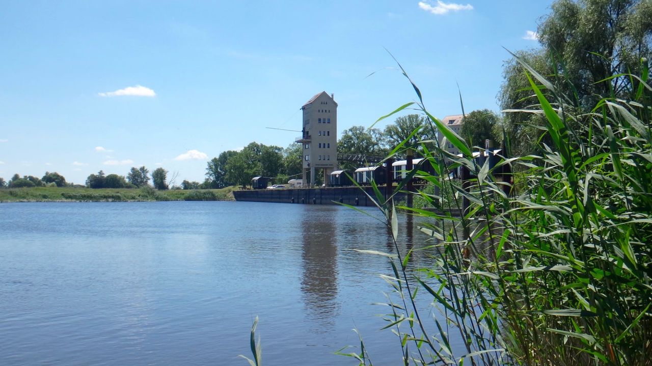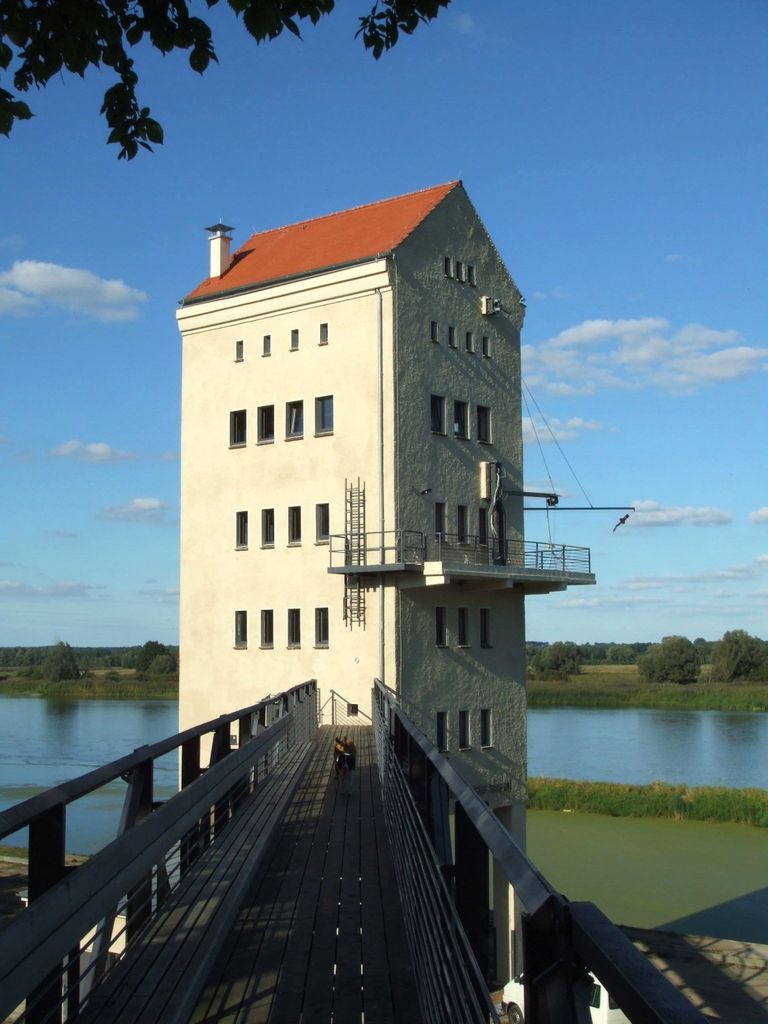 Der alte Verladeturm wurde im Jahr 2005 durch Jens Plate Architekten umgestaltet. Über die oberen vier Etagen erstreckt sich eine großzügig eingerichtete Ferienwohnung; auf die Kaminebene mit dem Balkon folgt eine Loftküche, darüber beherbergen zwei Schlafzimmer bis zu vier Personen. Die Fenster in alle vier Himmelsrichtungen bieten einzigartige Aussichten über das Naturparadies der Mittleren Oder. Durch das teilverglaste Dach öffnet sich der Blick in den nächtlichen Sternenhimmel.