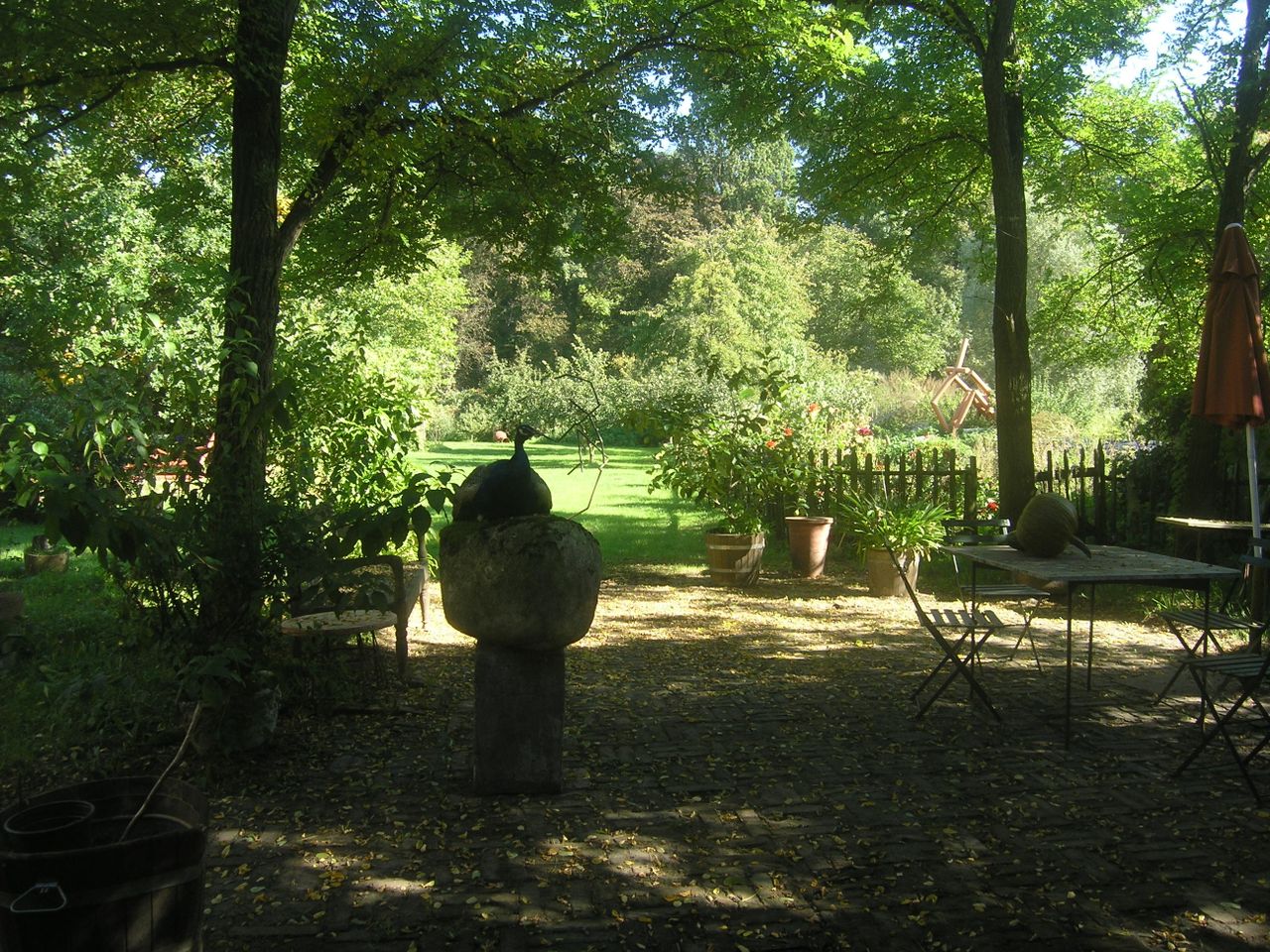 9000qm Garten mit großen Bäumen, Rasenflächen und Skulpturen, Anschluss an einen