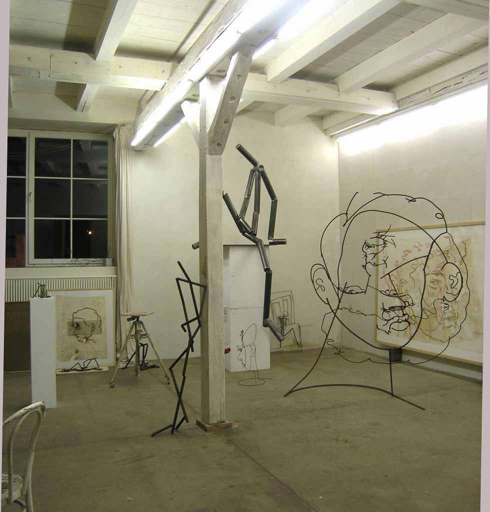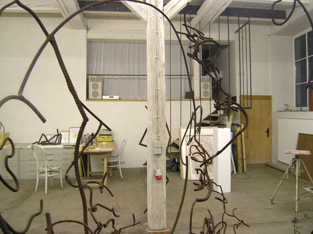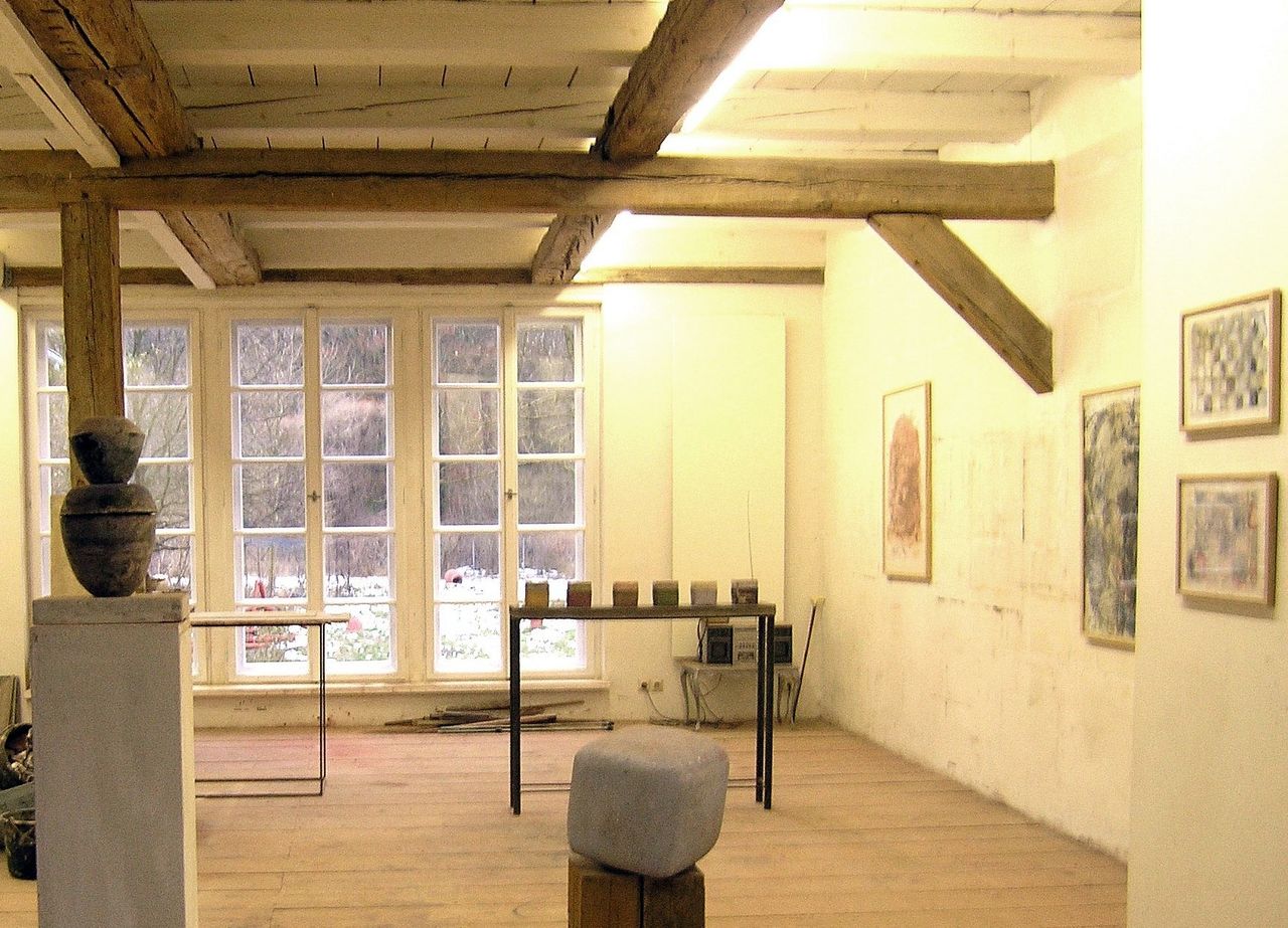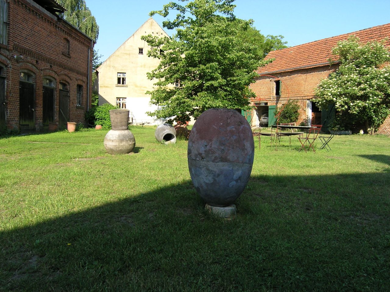1 Ferienwohnung für 2 Personen und 2 große ( ca. jeweils 100 qm) Künstlerateliers mit großen Fenstern, Innenhof begrünt mit Bäumen,Sträuchern, Skulpturen,