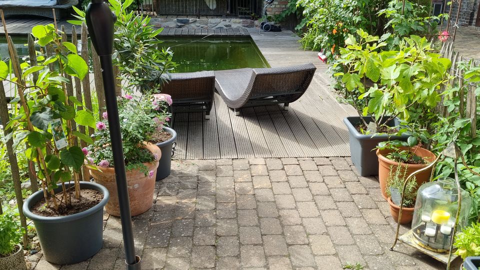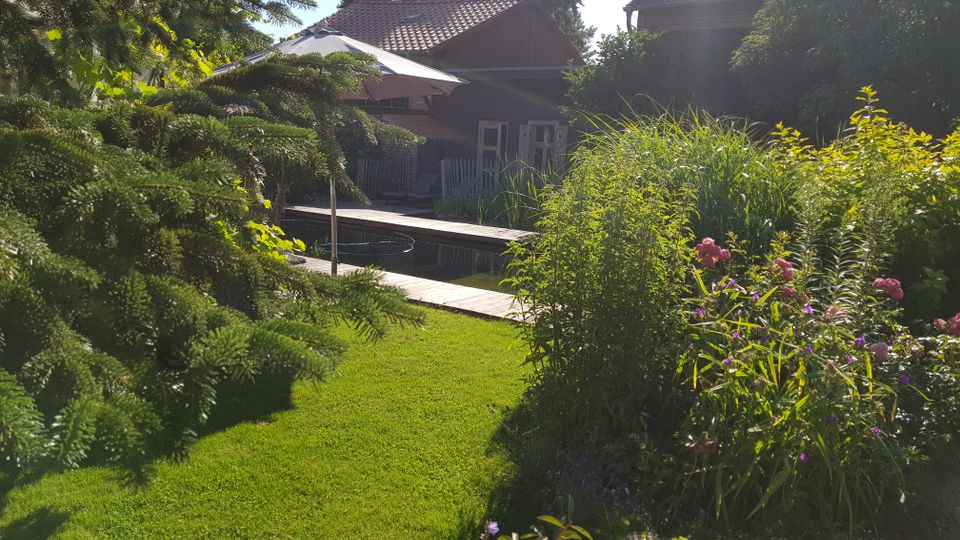 Wunderschöner Garten mit Naturpool, Sommerküche, Grillplatz und Gewächshaus.
